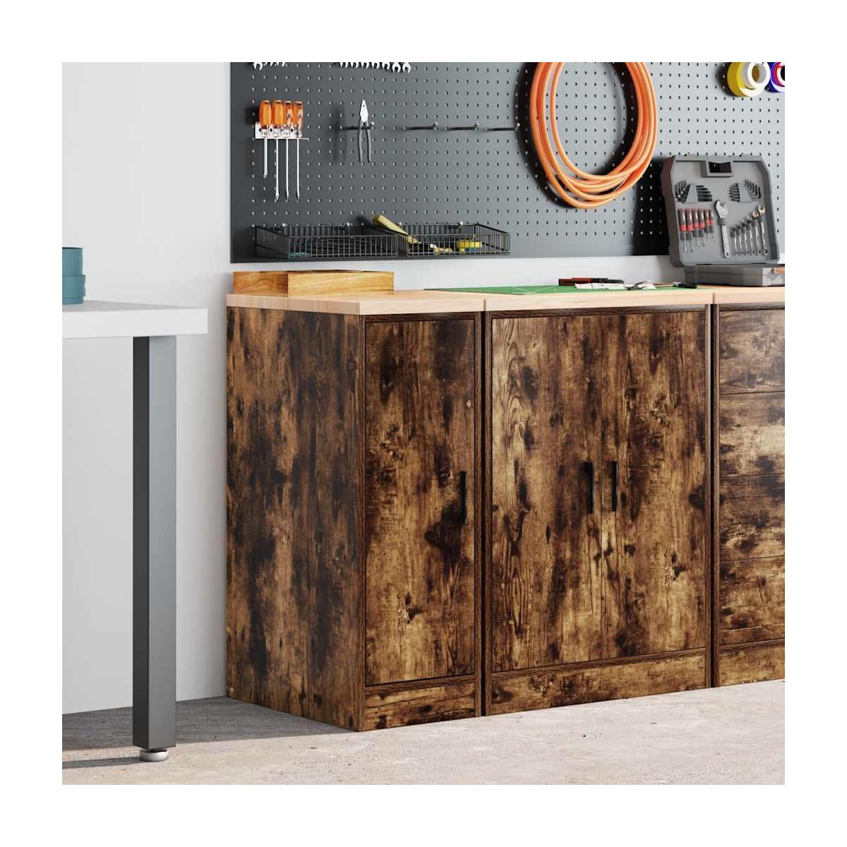 Este armario de almacenamiento de garaje es una excelente opción para organizar todas sus herramientas y materiales de bricolaje en el garaje, el trastero o el taller. Durable y de larga duración: este gabinete de garaje está hecho de madera de pino duradera y madera de ingeniería, lo que garantiza estabilidad y robustez para un uso duradero.Amplio espacio de almacenamiento: con 2 compartimentos de almacenamiento detrás de las puertas, este gabinete de herramientas le permite mantener sus herramientas de uso frecuente a su alcance, lo que hace que sea conveniente acceder a todo lo que necesita para su próximo proyecto.Superficie de trabajo versátil: la encimera de madera proporciona una superficie resistente para diversas tareas, como reparaciones, montajes o proyectos de bricolaje.Fácil de mantener: Gracias a su superficie lisa, el armario es fácil de limpiar con un paño húmedo y requiere menos mantenimiento.Amplias aplicaciones: este gabinete de almacenamiento de garaje proporciona mucho espacio seguro, lo que lo hace ideal para organizar artículos en diversos entornos, como garajes, oficinas, lavaderos, despensas, sótanos o talleres. Advertencia:Para evitar que vuelque, este producto debe usarse con el dispositivo de fijación a la pared suministrado.