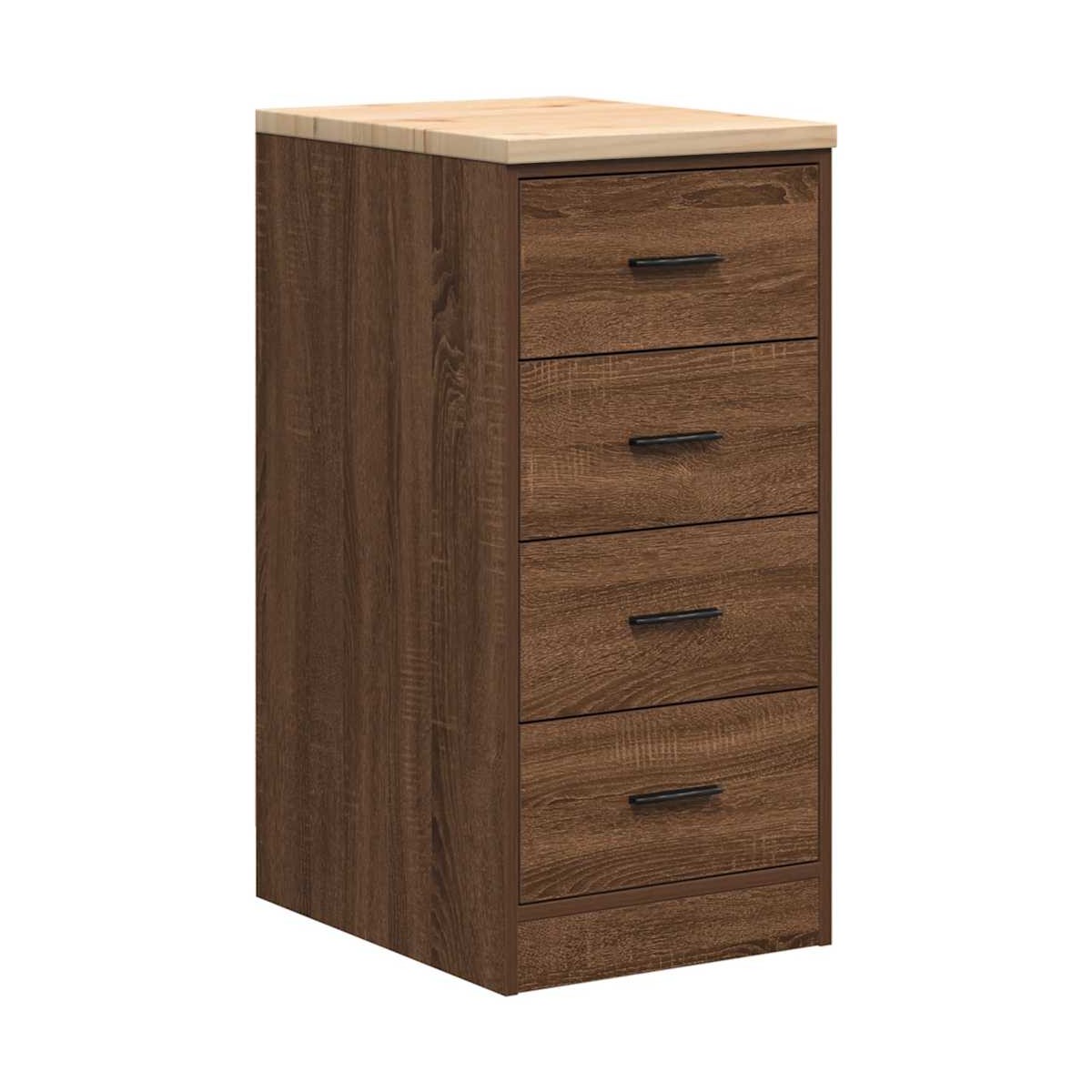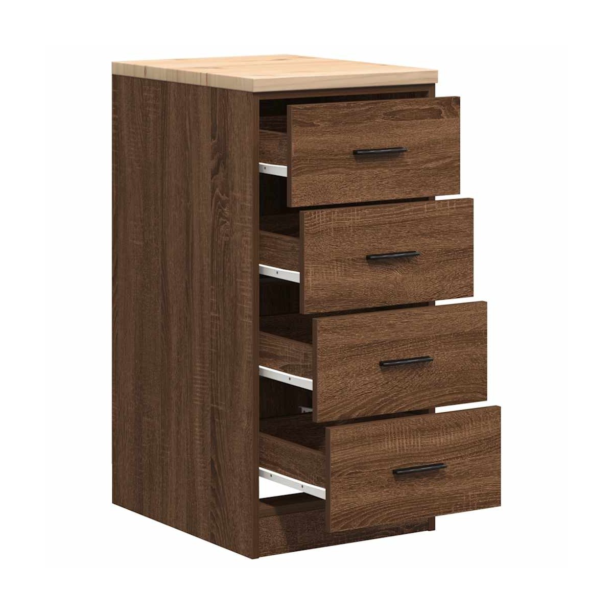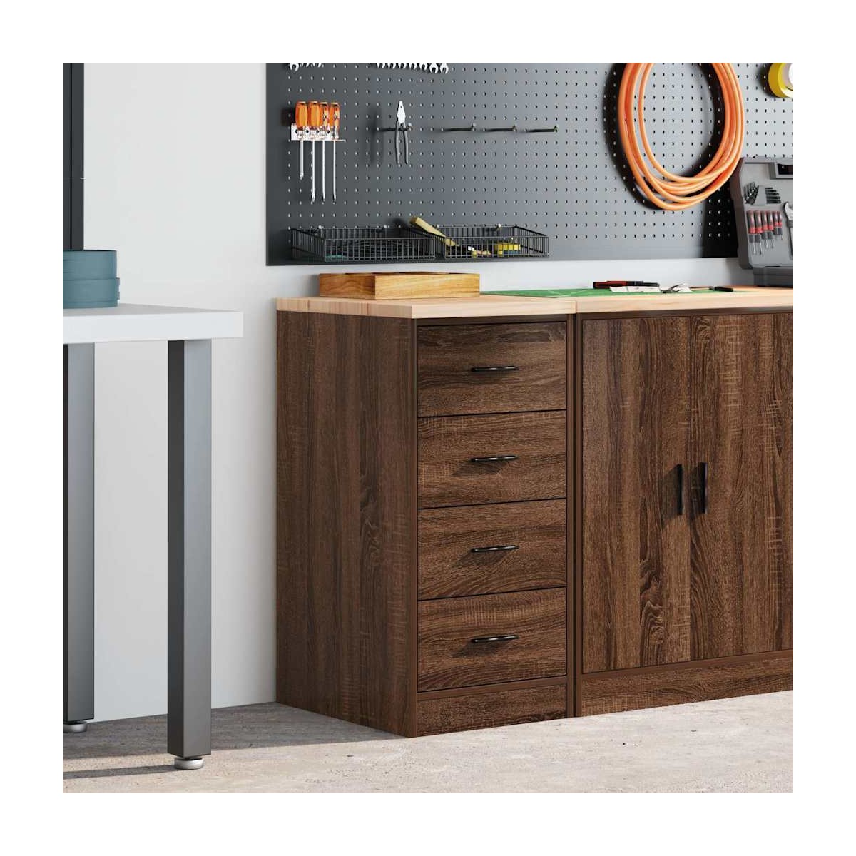 Este armario de almacenamiento de garaje es una excelente opción para organizar todas sus herramientas y materiales de bricolaje en el garaje, el trastero o el taller. Durable y de larga duración: este gabinete de garaje está hecho de madera de pino duradera y madera de ingeniería, lo que garantiza estabilidad y robustez para un uso duradero.Amplio espacio de almacenamiento: con cuatro cajones espaciosos, este gabinete de herramientas le permite mantener las herramientas de uso frecuente al alcance de la mano, lo que hace que sea conveniente acceder a todo lo que necesita para su próximo proyecto.Superficie de trabajo versátil: la encimera de madera proporciona una superficie resistente para diversas tareas, como reparaciones, montajes o proyectos de bricolaje.Fácil de mantener: Gracias a su superficie lisa, el armario es fácil de limpiar con un paño húmedo y requiere menos mantenimiento.Amplias aplicaciones: este gabinete de almacenamiento de garaje proporciona mucho espacio seguro, lo que lo hace ideal para organizar artículos en diversos entornos, como garajes, oficinas, lavaderos, despensas, sótanos o talleres. Advertencia:Para evitar que vuelque, este producto debe usarse con el dispositivo de fijación a la pared suministrado.