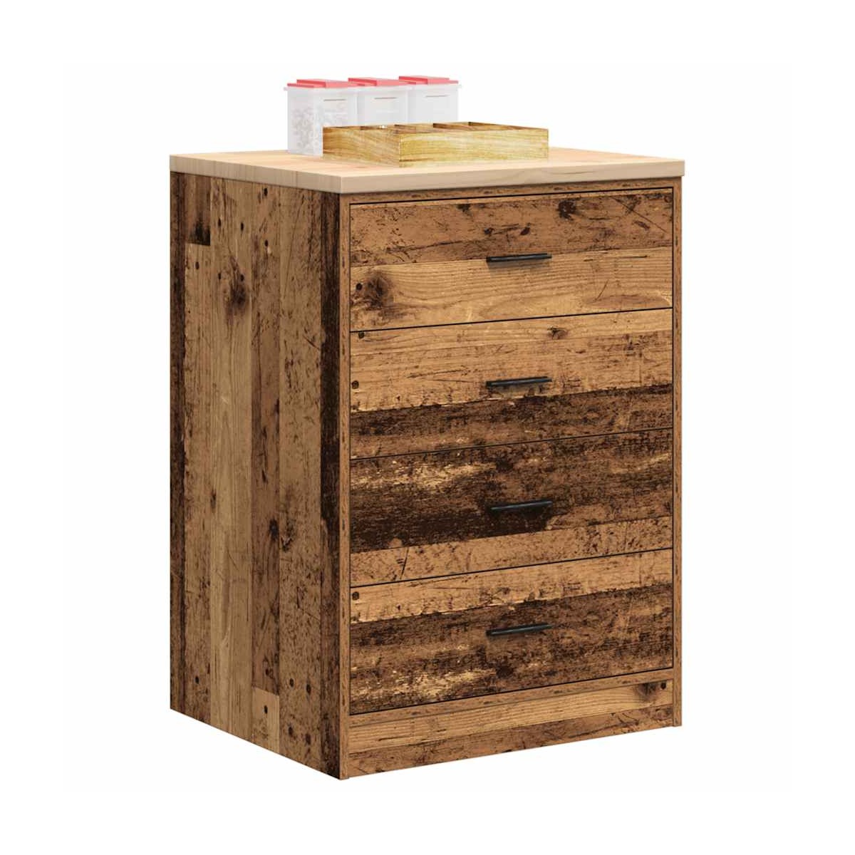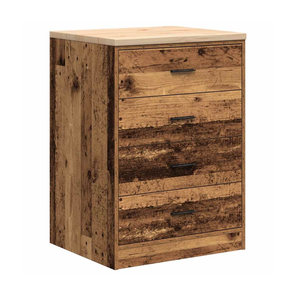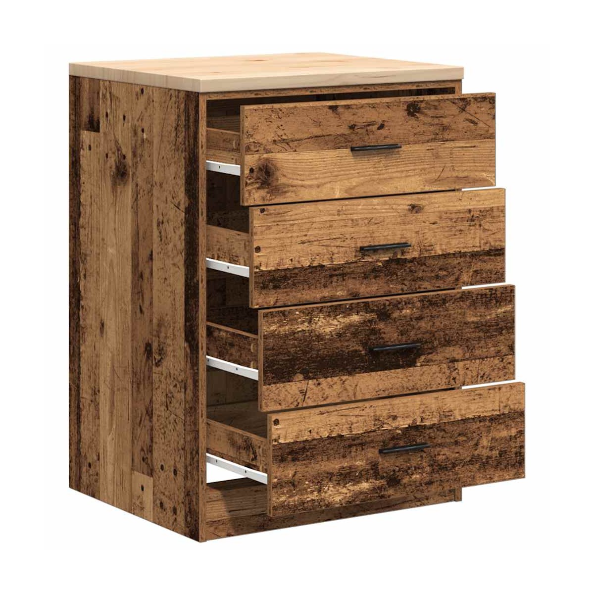 Este armario de almacenamiento de garaje es una excelente opción para organizar todas sus herramientas y materiales de bricolaje en el garaje, el trastero o el taller. Durable y de larga duración: este gabinete de garaje está hecho de madera de pino duradera y madera de ingeniería, lo que garantiza estabilidad y robustez para un uso duradero.Amplio espacio de almacenamiento: con cuatro cajones espaciosos, este gabinete de herramientas le permite mantener las herramientas de uso frecuente al alcance de la mano, lo que hace que sea conveniente acceder a todo lo que necesita para su próximo proyecto.Superficie de trabajo versátil: la encimera de madera proporciona una superficie resistente para diversas tareas, como reparaciones, montajes o proyectos de bricolaje.Fácil de mantener: Gracias a su superficie lisa, el armario es fácil de limpiar con un paño húmedo y requiere menos mantenimiento.Amplias aplicaciones: este gabinete de almacenamiento de garaje proporciona mucho espacio seguro, lo que lo hace ideal para organizar artículos en diversos entornos, como garajes, oficinas, lavaderos, despensas, sótanos o talleres. Advertencia:Para evitar que vuelque, este producto debe usarse con el dispositivo de fijación a la pared suministrado.