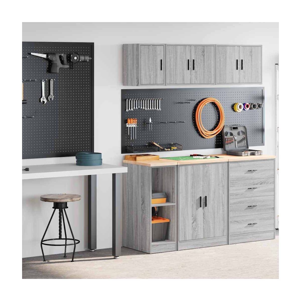 Estos armarios de garaje son una excelente opción para organizar todas sus herramientas y materiales de bricolaje en el garaje, trastero o taller. Durable y de larga duración: este gabinete de garaje está hecho de madera de pino duradera y madera de ingeniería, lo que garantiza estabilidad y robustez para un uso duradero.Amplio espacio de almacenamiento: este gabinete de herramientas le permite mantener sus herramientas de uso frecuente a su alcance, lo que hace que sea conveniente acceder a todo lo que necesita para su próximo proyecto.Superficie de trabajo versátil: la encimera de madera proporciona una superficie resistente para diversas tareas, como reparaciones, montajes o proyectos de bricolaje.Fácil de mantener: Gracias a su superficie lisa, el armario es fácil de limpiar con un paño húmedo y requiere menos mantenimiento.Amplias aplicaciones: este gabinete de almacenamiento de garaje proporciona mucho espacio seguro, lo que lo hace ideal para organizar artículos en diversos entornos, como garajes, oficinas, lavaderos, despensas, sótanos o talleres.Opciones de montaje flexibles: Las puertas del compartimiento se pueden instalar a la izquierda o a la derecha según tu conveniencia y hábitos personales. Información útil:Los tornillos y los tacos para el interior de la pared no están incluidos. Recomendamos encontrar y utilizar tornillos y tacos adecuados específicamente para las paredes. Si no estás seguro, puedes consultar con un profesional. Lee y sigue cada paso de las instrucciones. Advertencia:Para evitar que vuelque, este producto debe usarse con el dispositivo de fijación a la pared suministrado.