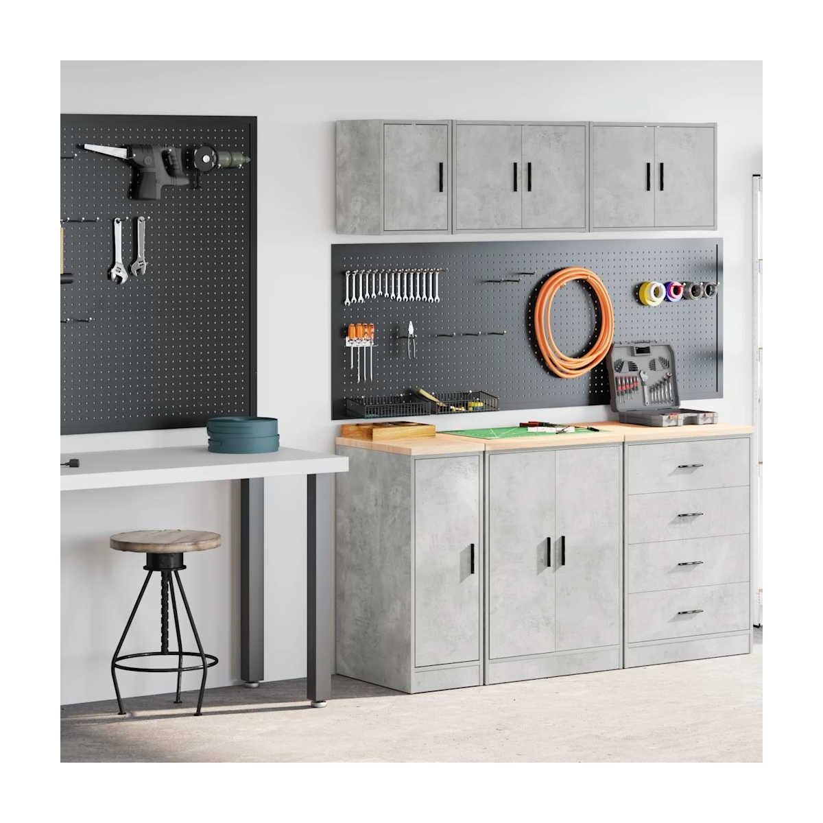 Estos armarios de garaje son una excelente opción para organizar todas sus herramientas y materiales de bricolaje en el garaje, trastero o taller. Durable y de larga duración: este gabinete de garaje está hecho de madera de pino duradera y madera de ingeniería, lo que garantiza estabilidad y robustez para un uso duradero.Amplio espacio de almacenamiento: este gabinete de herramientas le permite mantener sus herramientas de uso frecuente a su alcance, lo que hace que sea conveniente acceder a todo lo que necesita para su próximo proyecto.Superficie de trabajo versátil: la encimera de madera proporciona una superficie resistente para diversas tareas, como reparaciones, montajes o proyectos de bricolaje.Fácil de mantener: Gracias a su superficie lisa, el armario es fácil de limpiar con un paño húmedo y requiere menos mantenimiento.Amplias aplicaciones: este gabinete de almacenamiento de garaje proporciona mucho espacio seguro, lo que lo hace ideal para organizar artículos en diversos entornos, como garajes, oficinas, lavaderos, despensas, sótanos o talleres.Opciones de montaje flexibles: Las puertas del compartimiento se pueden instalar a la izquierda o a la derecha según tu conveniencia y hábitos personales. Información útil:Los tornillos y los tacos para el interior de la pared no están incluidos. Recomendamos encontrar y utilizar tornillos y tacos adecuados específicamente para las paredes. Si no estás seguro, puedes consultar con un profesional. Lee y sigue cada paso de las instrucciones. Advertencia:Para evitar que vuelque, este producto debe usarse con el dispositivo de fijación a la pared suministrado.