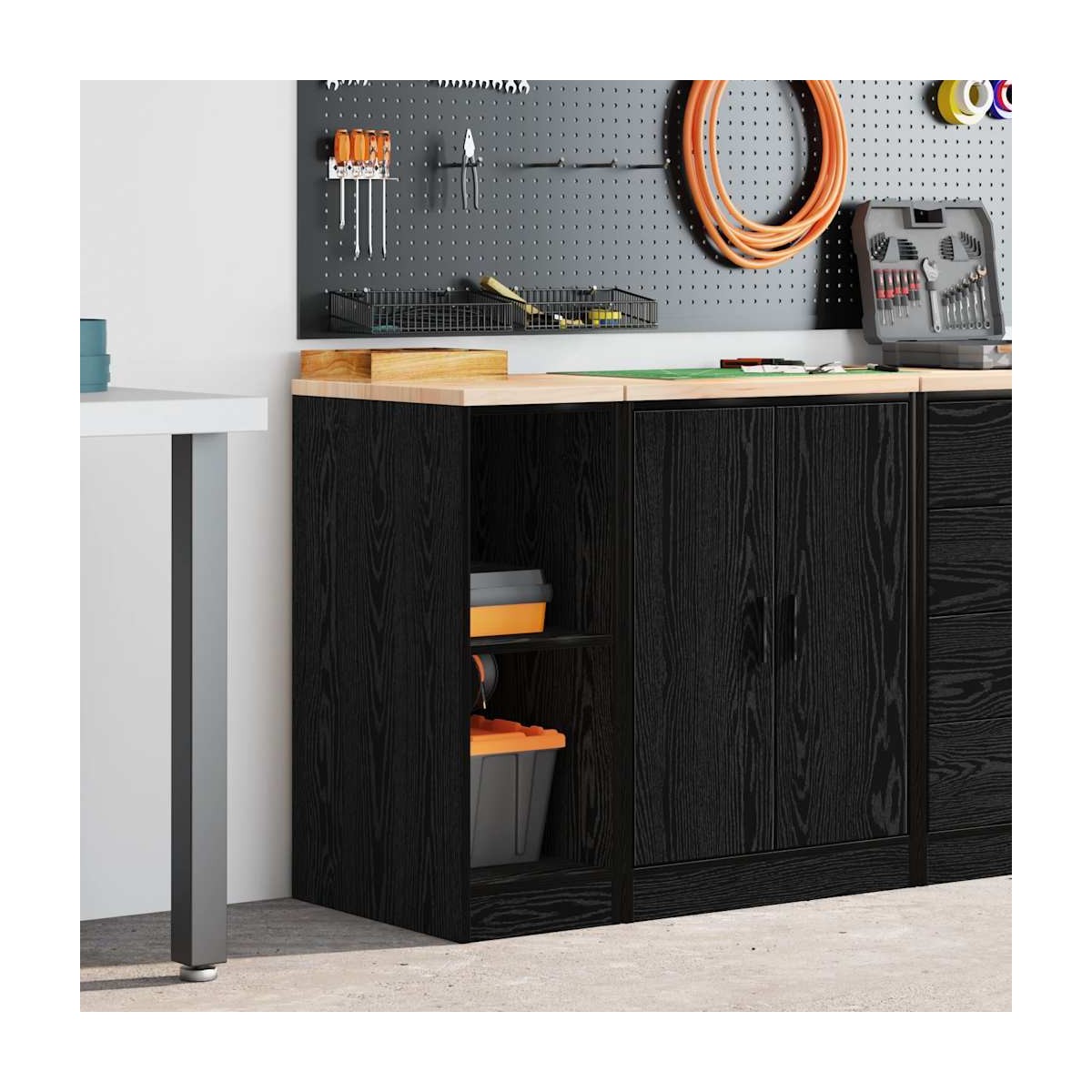 Este armario de almacenamiento de garaje es una excelente opción para organizar todas sus herramientas y materiales de bricolaje en el garaje, el trastero o el taller. Durable y de larga duración: este gabinete de garaje está hecho de madera de pino duradera y madera de ingeniería, lo que garantiza estabilidad y robustez para un uso duradero.Amplio espacio de almacenamiento: con 2 estantes de almacenamiento, este gabinete de herramientas le permite mantener sus herramientas de uso frecuente a su alcance, lo que hace que sea conveniente acceder a todo lo que necesita para su próximo proyecto.Superficie de trabajo versátil: la encimera de madera proporciona una superficie resistente para diversas tareas, como reparaciones, montajes o proyectos de bricolaje.Fácil de mantener: Gracias a su superficie lisa, el armario es fácil de limpiar con un paño húmedo y requiere menos mantenimiento.Amplias aplicaciones: este gabinete de almacenamiento de garaje proporciona mucho espacio seguro, lo que lo hace ideal para organizar artículos en diversos entornos, como garajes, oficinas, lavaderos, despensas, sótanos o talleres. Advertencia:Para evitar que vuelque, este producto debe usarse con el dispositivo de fijación a la pared suministrado.