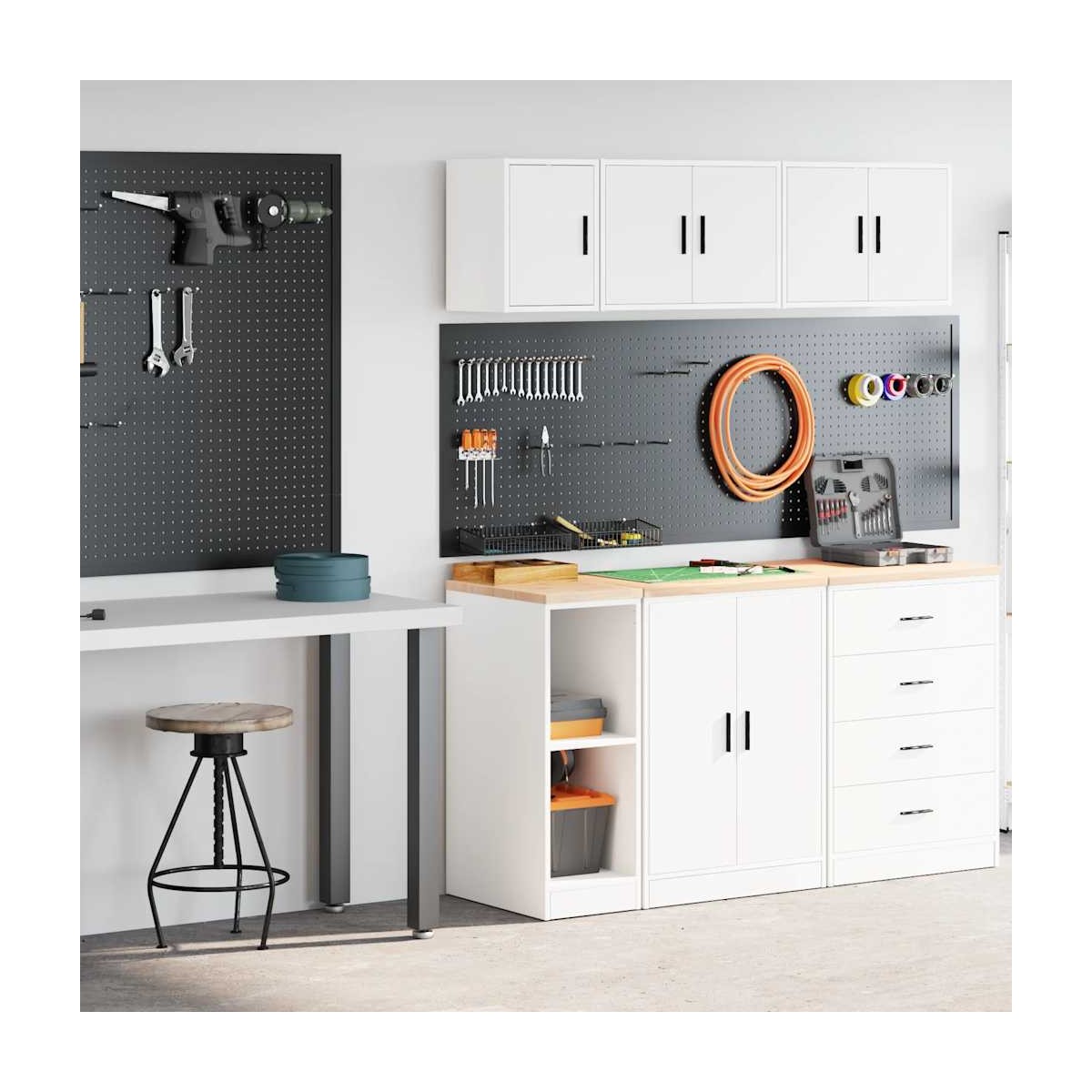 Estos armarios de garaje son una excelente opción para organizar todas sus herramientas y materiales de bricolaje en el garaje, trastero o taller. Durable y de larga duración: este gabinete de garaje está hecho de madera de pino duradera y madera de ingeniería, lo que garantiza estabilidad y robustez para un uso duradero.Amplio espacio de almacenamiento: este gabinete de herramientas le permite mantener sus herramientas de uso frecuente a su alcance, lo que hace que sea conveniente acceder a todo lo que necesita para su próximo proyecto.Superficie de trabajo versátil: la encimera de madera proporciona una superficie resistente para diversas tareas, como reparaciones, montajes o proyectos de bricolaje.Fácil de mantener: Gracias a su superficie lisa, el armario es fácil de limpiar con un paño húmedo y requiere menos mantenimiento.Amplias aplicaciones: este gabinete de almacenamiento de garaje proporciona mucho espacio seguro, lo que lo hace ideal para organizar artículos en diversos entornos, como garajes, oficinas, lavaderos, despensas, sótanos o talleres.Opciones de montaje flexibles: Las puertas del compartimiento se pueden instalar a la izquierda o a la derecha según tu conveniencia y hábitos personales. Información útil:Los tornillos y los tacos para el interior de la pared no están incluidos. Recomendamos encontrar y utilizar tornillos y tacos adecuados específicamente para las paredes. Si no estás seguro, puedes consultar con un profesional. Lee y sigue cada paso de las instrucciones. Advertencia:Para evitar que vuelque, este producto debe usarse con el dispositivo de fijación a la pared suministrado.