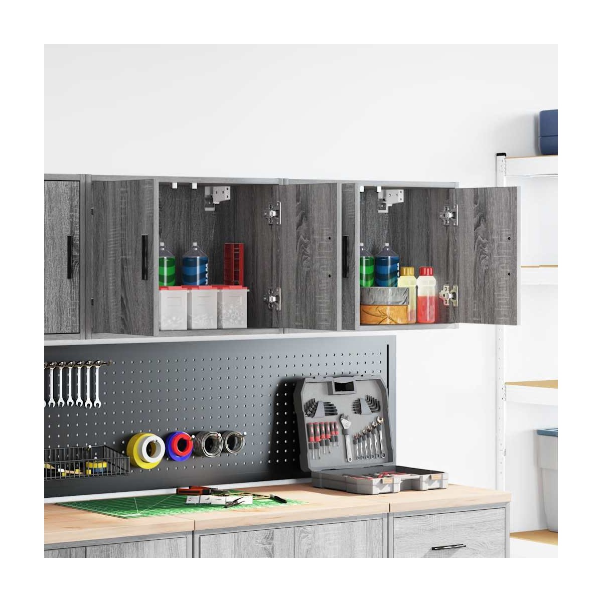 Estos gabinetes de pared para garaje son perfectos para guardar herramientas y accesorios sin ocupar espacio en el piso. Material estable y duradero: La madera de ingeniería es un material duradero y estable con una superficie lisa que es resistente a la humedad, la deformación y la rotura, lo que la convierte en una opción fiable para una variedad de proyectos.Amplio espacio de almacenamiento: con un espacioso compartimento detrás de la puerta, el armario de pared del garaje ofrece fácil acceso a sus herramientas y accesorios.Práctica puerta: La puerta ayuda a mantener un espacio limpio y organizado ocultando pequeños objetos esenciales y desorden detrás de ellos.Fácil de mantener: Gracias a su superficie lisa, el armario es fácil de limpiar con un paño húmedo y requiere menos mantenimiento.Amplias aplicaciones: este gabinete de almacenamiento de garaje proporciona mucho espacio seguro, lo que lo hace ideal para organizar artículos en diversos entornos, como garajes, oficinas, lavaderos, despensas, sótanos o talleres. Información útil:Los tornillos y los tacos para el interior de la pared no están incluidos. Recomendamos encontrar y utilizar tornillos y tacos adecuados específicamente para las paredes. Si no estás seguro, puedes consultar con un profesional. Lee y sigue cada paso de las instrucciones.