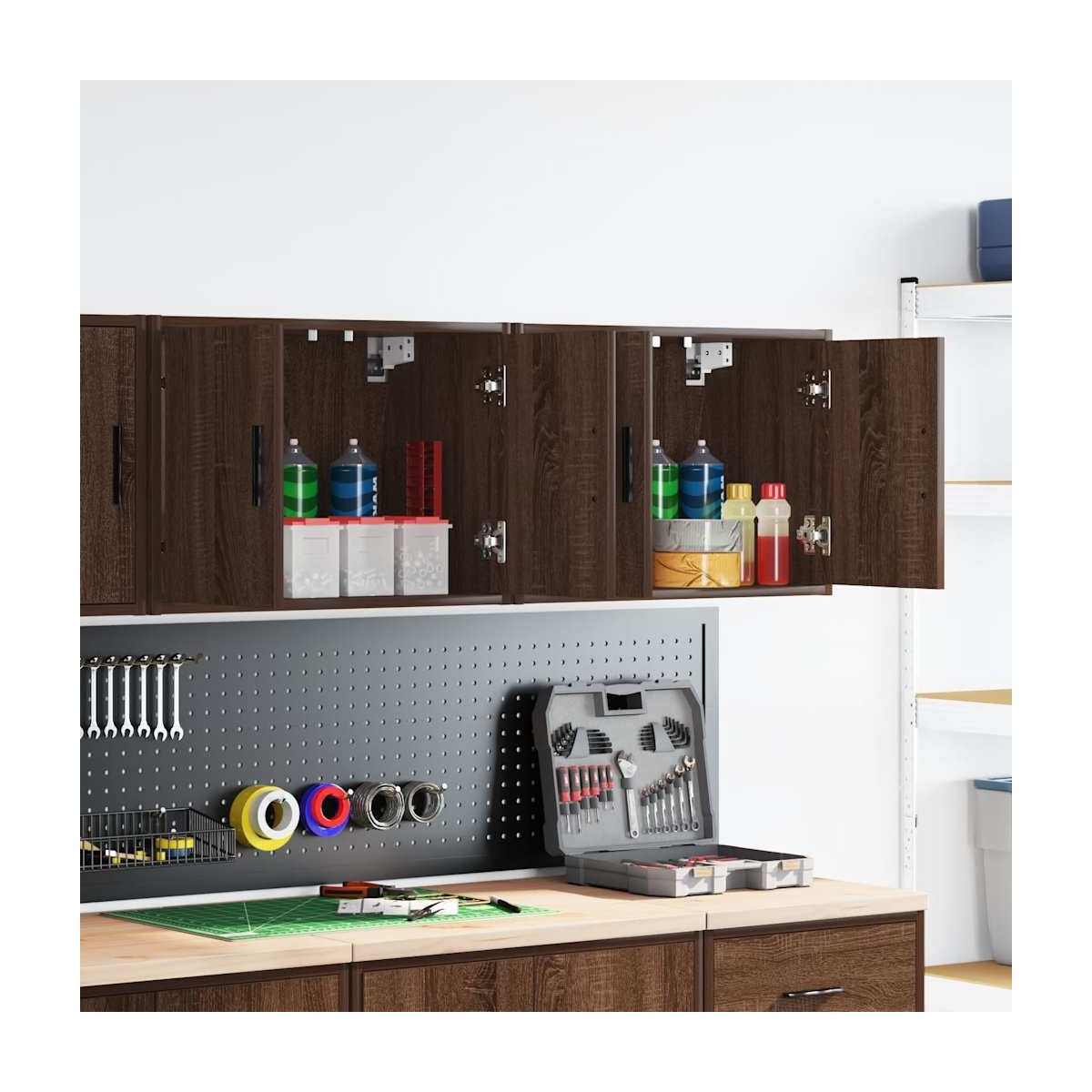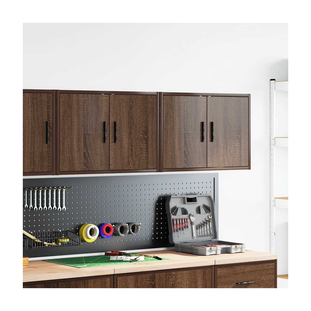 Estos gabinetes de pared para garaje son perfectos para guardar herramientas y accesorios sin ocupar espacio en el piso. Material estable y duradero: La madera de ingeniería es un material duradero y estable con una superficie lisa que es resistente a la humedad, la deformación y la rotura, lo que la convierte en una opción fiable para una variedad de proyectos.Amplio espacio de almacenamiento: con un espacioso compartimento detrás de la puerta, el armario de pared del garaje ofrece fácil acceso a sus herramientas y accesorios.Práctica puerta: La puerta ayuda a mantener un espacio limpio y organizado ocultando pequeños objetos esenciales y desorden detrás de ellos.Fácil de mantener: Gracias a su superficie lisa, el armario es fácil de limpiar con un paño húmedo y requiere menos mantenimiento.Amplias aplicaciones: este gabinete de almacenamiento de garaje proporciona mucho espacio seguro, lo que lo hace ideal para organizar artículos en diversos entornos, como garajes, oficinas, lavaderos, despensas, sótanos o talleres. Información útil:Los tornillos y los tacos para el interior de la pared no están incluidos. Recomendamos encontrar y utilizar tornillos y tacos adecuados específicamente para las paredes. Si no estás seguro, puedes consultar con un profesional. Lee y sigue cada paso de las instrucciones.