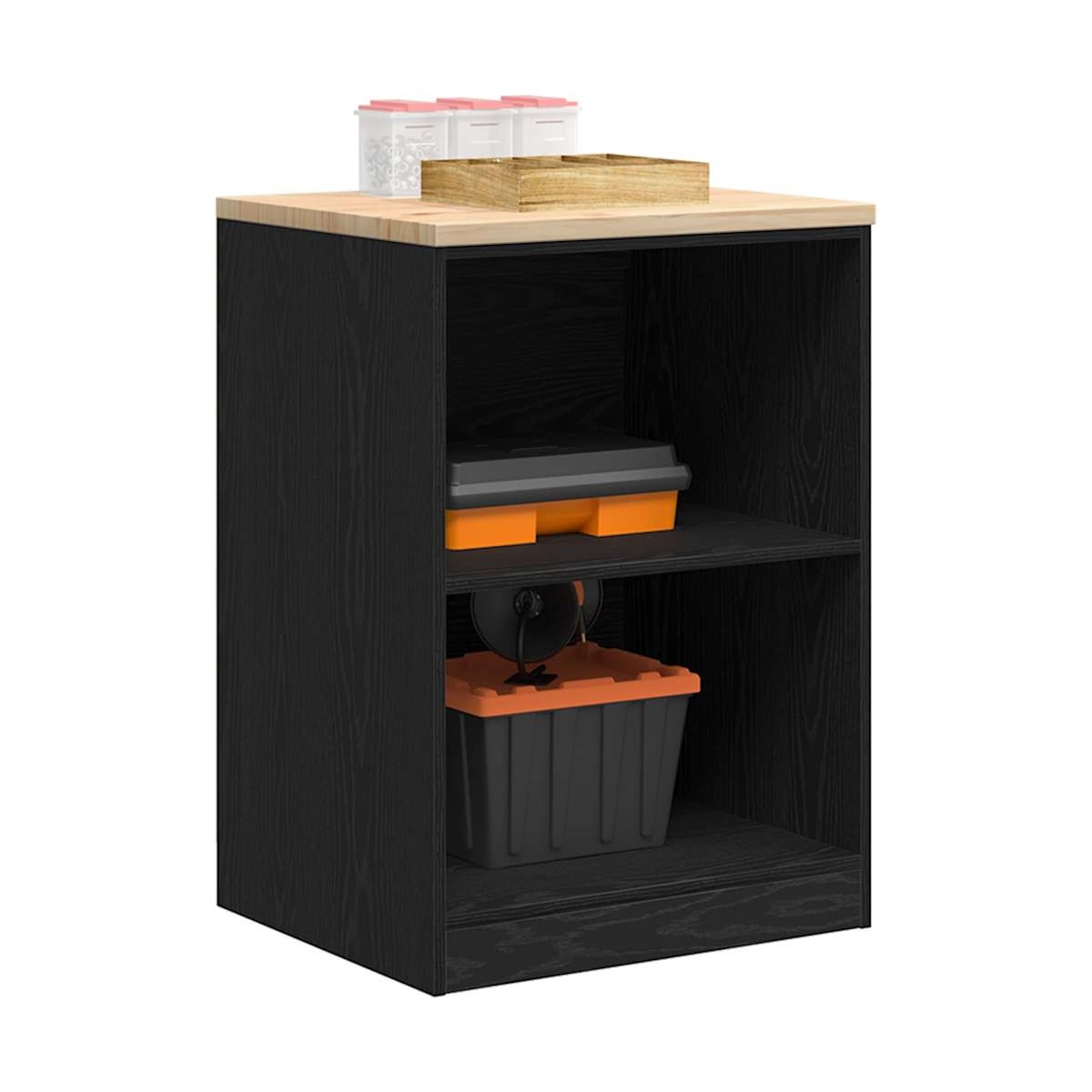 Este armario de almacenamiento de garaje es una excelente opción para organizar todas sus herramientas y materiales de bricolaje en el garaje, el trastero o el taller. Durable y de larga duración: este gabinete de garaje está hecho de madera de pino duradera y madera de ingeniería, lo que garantiza estabilidad y robustez para un uso duradero.Amplio espacio de almacenamiento: con 2 estantes de almacenamiento, este gabinete de herramientas le permite mantener sus herramientas de uso frecuente a su alcance, lo que hace que sea conveniente acceder a todo lo que necesita para su próximo proyecto.Superficie de trabajo versátil: la encimera de madera proporciona una superficie resistente para diversas tareas, como reparaciones, montajes o proyectos de bricolaje.Fácil de mantener: Gracias a su superficie lisa, el armario es fácil de limpiar con un paño húmedo y requiere menos mantenimiento.Amplias aplicaciones: este gabinete de almacenamiento de garaje proporciona mucho espacio seguro, lo que lo hace ideal para organizar artículos en diversos entornos, como garajes, oficinas, lavaderos, despensas, sótanos o talleres. Advertencia:Para evitar que vuelque, este producto debe usarse con el dispositivo de fijación a la pared suministrado.