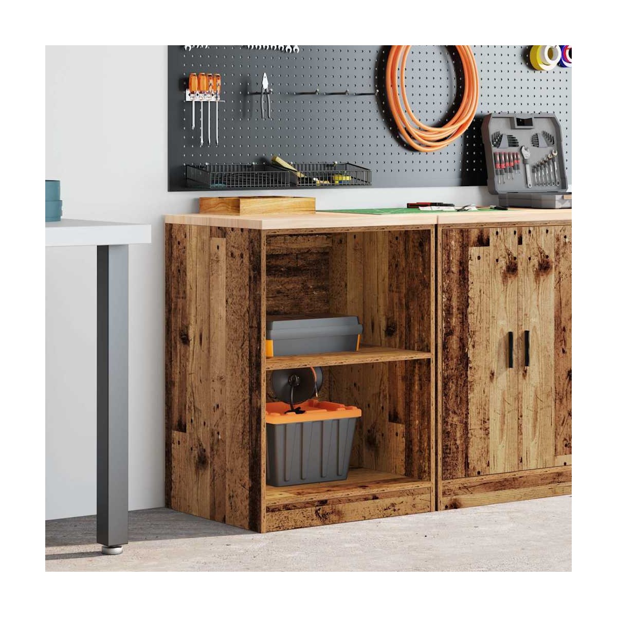 Este armario de almacenamiento de garaje es una excelente opción para organizar todas sus herramientas y materiales de bricolaje en el garaje, el trastero o el taller. Durable y de larga duración: este gabinete de garaje está hecho de madera de pino duradera y madera de ingeniería, lo que garantiza estabilidad y robustez para un uso duradero.Amplio espacio de almacenamiento: con 2 estantes de almacenamiento, este gabinete de herramientas le permite mantener sus herramientas de uso frecuente a su alcance, lo que hace que sea conveniente acceder a todo lo que necesita para su próximo proyecto.Superficie de trabajo versátil: la encimera de madera proporciona una superficie resistente para diversas tareas, como reparaciones, montajes o proyectos de bricolaje.Fácil de mantener: Gracias a su superficie lisa, el armario es fácil de limpiar con un paño húmedo y requiere menos mantenimiento.Amplias aplicaciones: este gabinete de almacenamiento de garaje proporciona mucho espacio seguro, lo que lo hace ideal para organizar artículos en diversos entornos, como garajes, oficinas, lavaderos, despensas, sótanos o talleres. Advertencia:Para evitar que vuelque, este producto debe usarse con el dispositivo de fijación a la pared suministrado.