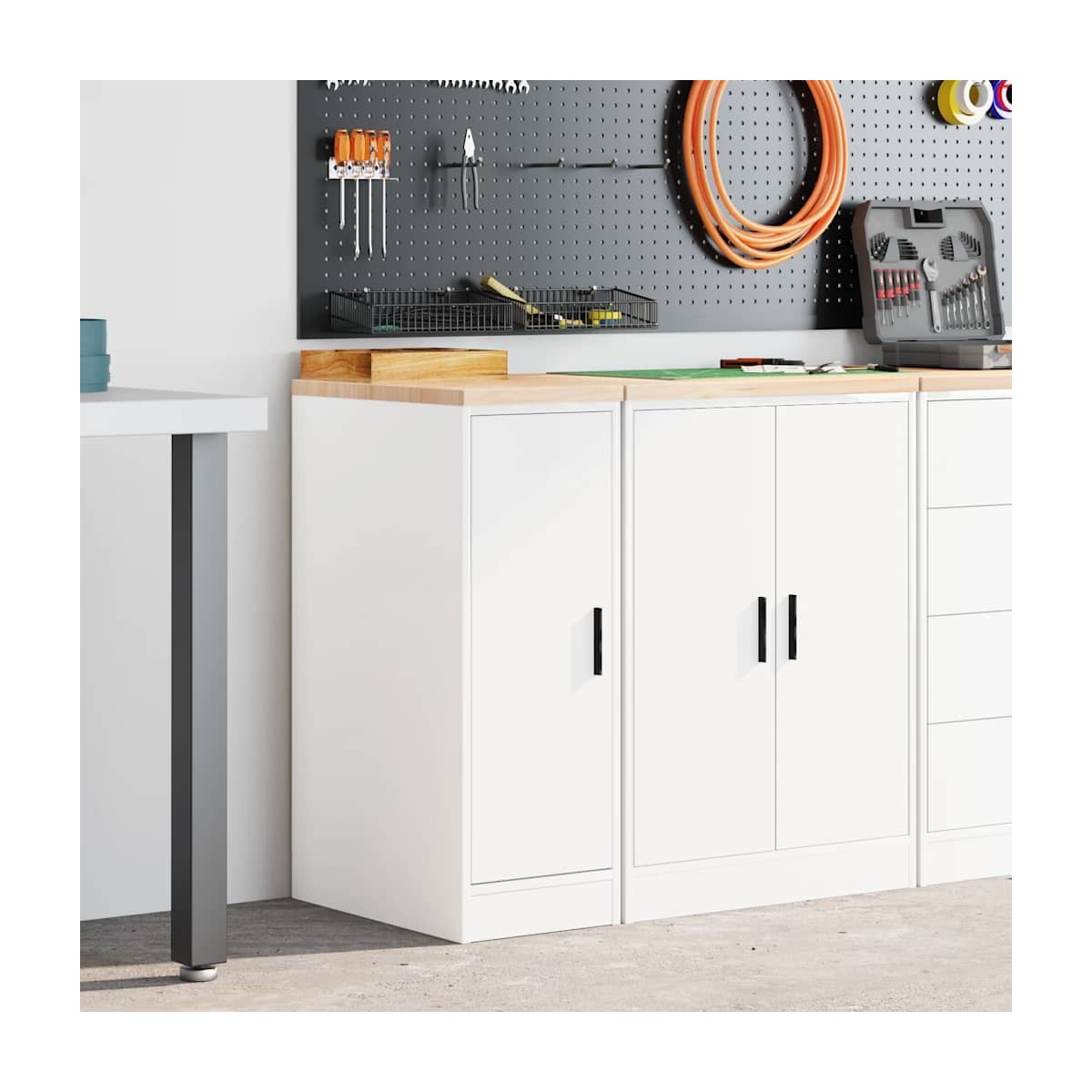Este armario de almacenamiento de garaje es una excelente opción para organizar todas sus herramientas y materiales de bricolaje en el garaje, el trastero o el taller. Durable y de larga duración: este gabinete de garaje está hecho de madera de pino duradera y madera de ingeniería, lo que garantiza estabilidad y robustez para un uso duradero.Amplio espacio de almacenamiento: con 2 compartimentos de almacenamiento detrás de las puertas, este gabinete de herramientas le permite mantener sus herramientas de uso frecuente a su alcance, lo que hace que sea conveniente acceder a todo lo que necesita para su próximo proyecto.Superficie de trabajo versátil: la encimera de madera proporciona una superficie resistente para diversas tareas, como reparaciones, montajes o proyectos de bricolaje.Fácil de mantener: Gracias a su superficie lisa, el armario es fácil de limpiar con un paño húmedo y requiere menos mantenimiento.Amplias aplicaciones: este gabinete de almacenamiento de garaje proporciona mucho espacio seguro, lo que lo hace ideal para organizar artículos en diversos entornos, como garajes, oficinas, lavaderos, despensas, sótanos o talleres. Advertencia:Para evitar que vuelque, este producto debe usarse con el dispositivo de fijación a la pared suministrado.
