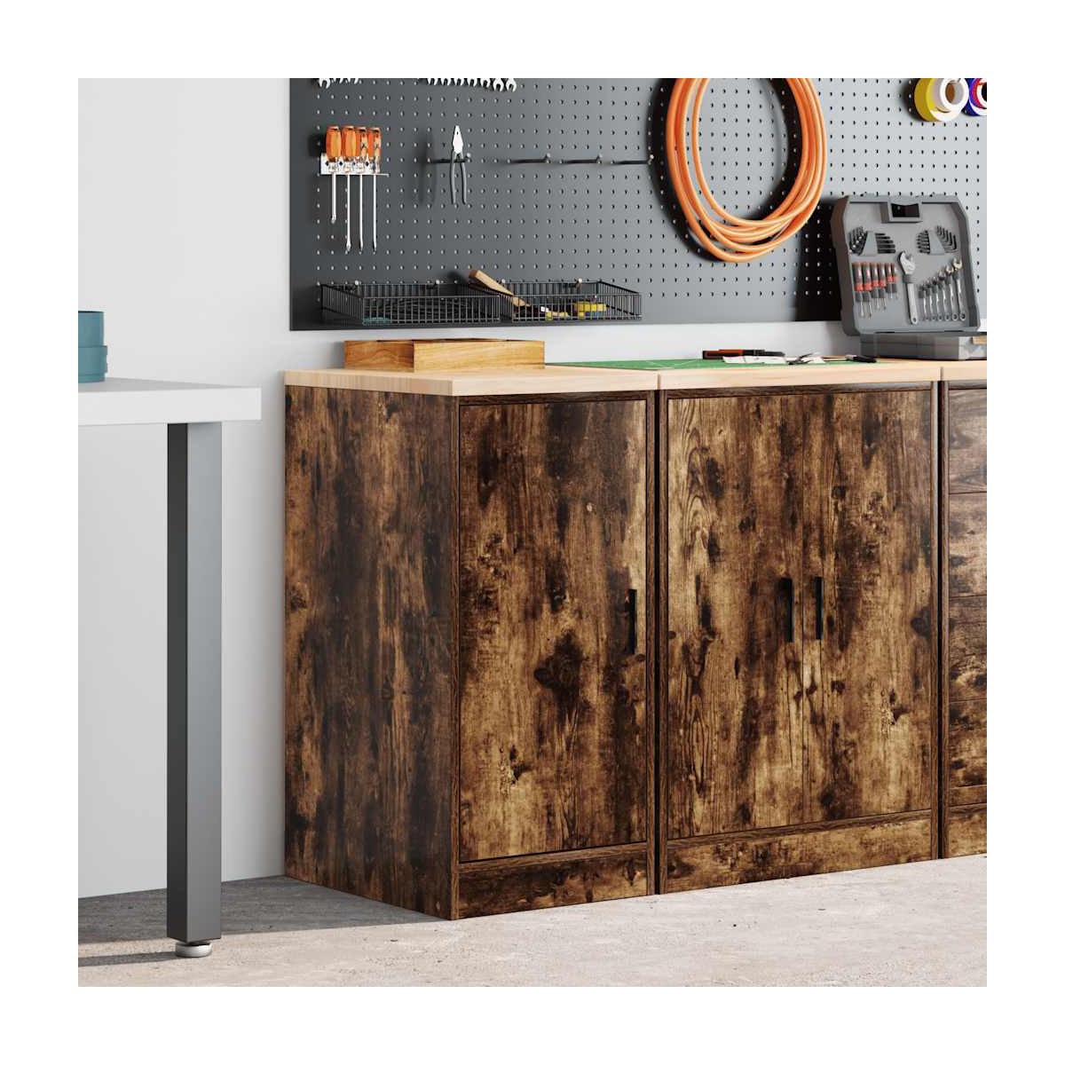 Este armario de almacenamiento de garaje es una excelente opción para organizar todas sus herramientas y materiales de bricolaje en el garaje, el trastero o el taller. Durable y de larga duración: este gabinete de garaje está hecho de madera de pino duradera y madera de ingeniería, lo que garantiza estabilidad y robustez para un uso duradero.Amplio espacio de almacenamiento: con 2 compartimentos de almacenamiento detrás de las puertas, este gabinete de herramientas le permite mantener sus herramientas de uso frecuente a su alcance, lo que hace que sea conveniente acceder a todo lo que necesita para su próximo proyecto.Superficie de trabajo versátil: la encimera de madera proporciona una superficie resistente para diversas tareas, como reparaciones, montajes o proyectos de bricolaje.Fácil de mantener: Gracias a su superficie lisa, el armario es fácil de limpiar con un paño húmedo y requiere menos mantenimiento.Amplias aplicaciones: este gabinete de almacenamiento de garaje proporciona mucho espacio seguro, lo que lo hace ideal para organizar artículos en diversos entornos, como garajes, oficinas, lavaderos, despensas, sótanos o talleres. Advertencia:Para evitar que vuelque, este producto debe usarse con el dispositivo de fijación a la pared suministrado.