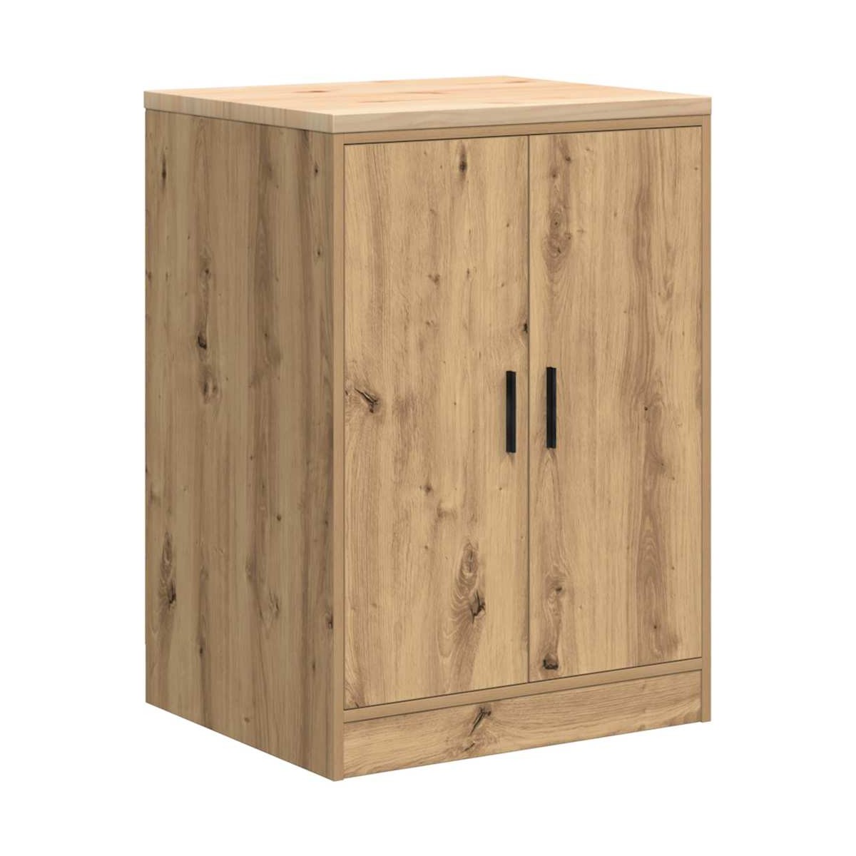 Este armario de almacenamiento de garaje es una excelente opción para organizar todas sus herramientas y materiales de bricolaje en el garaje, el trastero o el taller. Durable y de larga duración: este gabinete de garaje está hecho de madera de pino duradera y madera de ingeniería, lo que garantiza estabilidad y robustez para un uso duradero.Amplio espacio de almacenamiento: con 2 compartimentos de almacenamiento detrás de las puertas, este gabinete de herramientas le permite mantener sus herramientas de uso frecuente a su alcance, lo que hace que sea conveniente acceder a todo lo que necesita para su próximo proyecto.Superficie de trabajo versátil: la encimera de madera proporciona una superficie resistente para diversas tareas, como reparaciones, montajes o proyectos de bricolaje.Fácil de mantener: Gracias a su superficie lisa, el armario es fácil de limpiar con un paño húmedo y requiere menos mantenimiento.Amplias aplicaciones: este gabinete de almacenamiento de garaje proporciona mucho espacio seguro, lo que lo hace ideal para organizar artículos en diversos entornos, como garajes, oficinas, lavaderos, despensas, sótanos o talleres. Advertencia:Para evitar que vuelque, este producto debe usarse con el dispositivo de fijación a la pared suministrado.