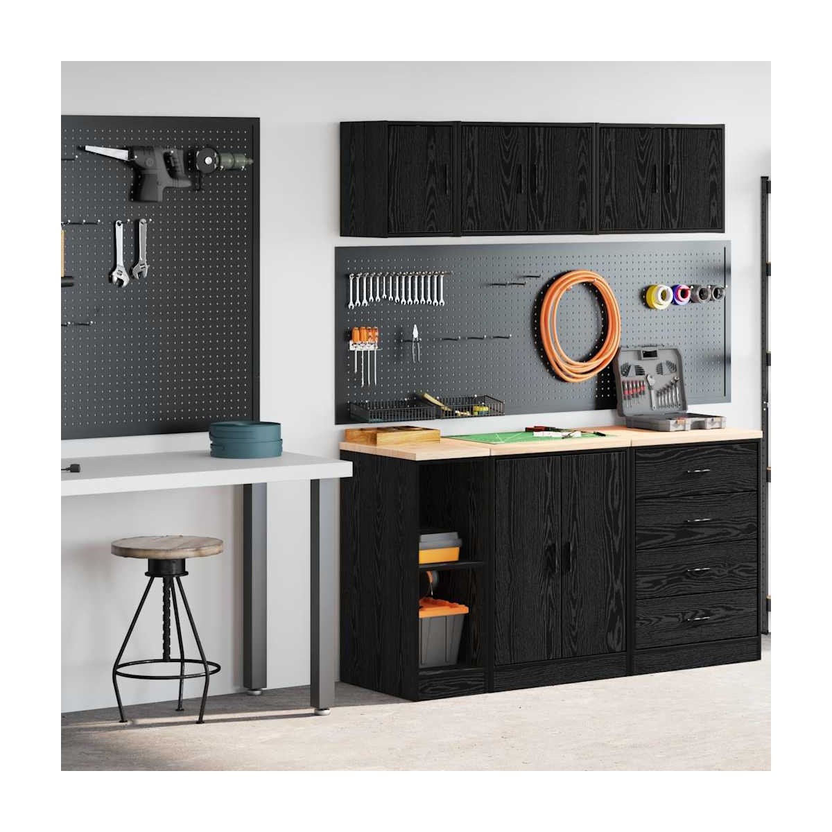 Estos armarios de garaje son una excelente opción para organizar todas sus herramientas y materiales de bricolaje en el garaje, trastero o taller. Durable y de larga duración: este gabinete de garaje está hecho de madera de pino duradera y madera de ingeniería, lo que garantiza estabilidad y robustez para un uso duradero.Amplio espacio de almacenamiento: este gabinete de herramientas le permite mantener sus herramientas de uso frecuente a su alcance, lo que hace que sea conveniente acceder a todo lo que necesita para su próximo proyecto.Superficie de trabajo versátil: la encimera de madera proporciona una superficie resistente para diversas tareas, como reparaciones, montajes o proyectos de bricolaje.Fácil de mantener: Gracias a su superficie lisa, el armario es fácil de limpiar con un paño húmedo y requiere menos mantenimiento.Amplias aplicaciones: este gabinete de almacenamiento de garaje proporciona mucho espacio seguro, lo que lo hace ideal para organizar artículos en diversos entornos, como garajes, oficinas, lavaderos, despensas, sótanos o talleres.Opciones de montaje flexibles: Las puertas del compartimiento se pueden instalar a la izquierda o a la derecha según tu conveniencia y hábitos personales. Información útil:Los tornillos y los tacos para el interior de la pared no están incluidos. Recomendamos encontrar y utilizar tornillos y tacos adecuados específicamente para las paredes. Si no estás seguro, puedes consultar con un profesional. Lee y sigue cada paso de las instrucciones. Advertencia:Para evitar que vuelque, este producto debe usarse con el dispositivo de fijación a la pared suministrado.