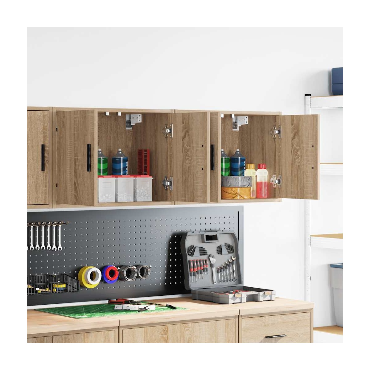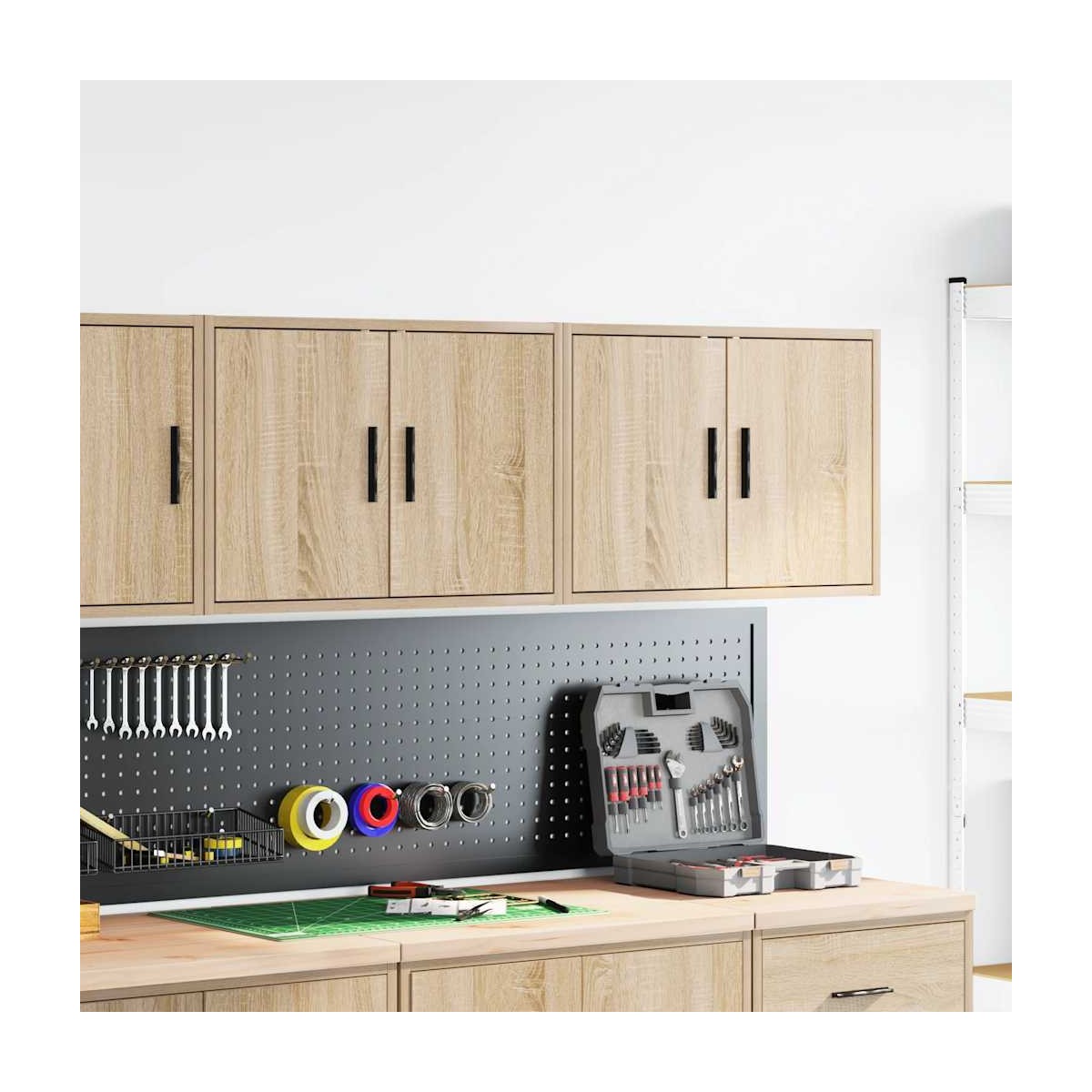 Estos gabinetes de pared para garaje son perfectos para guardar herramientas y accesorios sin ocupar espacio en el piso. Material estable y duradero: La madera de ingeniería es un material duradero y estable con una superficie lisa que es resistente a la humedad, la deformación y la rotura, lo que la convierte en una opción fiable para una variedad de proyectos.Amplio espacio de almacenamiento: con un espacioso compartimento detrás de la puerta, el armario de pared del garaje ofrece fácil acceso a sus herramientas y accesorios.Práctica puerta: La puerta ayuda a mantener un espacio limpio y organizado ocultando pequeños objetos esenciales y desorden detrás de ellos.Fácil de mantener: Gracias a su superficie lisa, el armario es fácil de limpiar con un paño húmedo y requiere menos mantenimiento.Amplias aplicaciones: este gabinete de almacenamiento de garaje proporciona mucho espacio seguro, lo que lo hace ideal para organizar artículos en diversos entornos, como garajes, oficinas, lavaderos, despensas, sótanos o talleres. Información útil:Los tornillos y los tacos para el interior de la pared no están incluidos. Recomendamos encontrar y utilizar tornillos y tacos adecuados específicamente para las paredes. Si no estás seguro, puedes consultar con un profesional. Lee y sigue cada paso de las instrucciones.