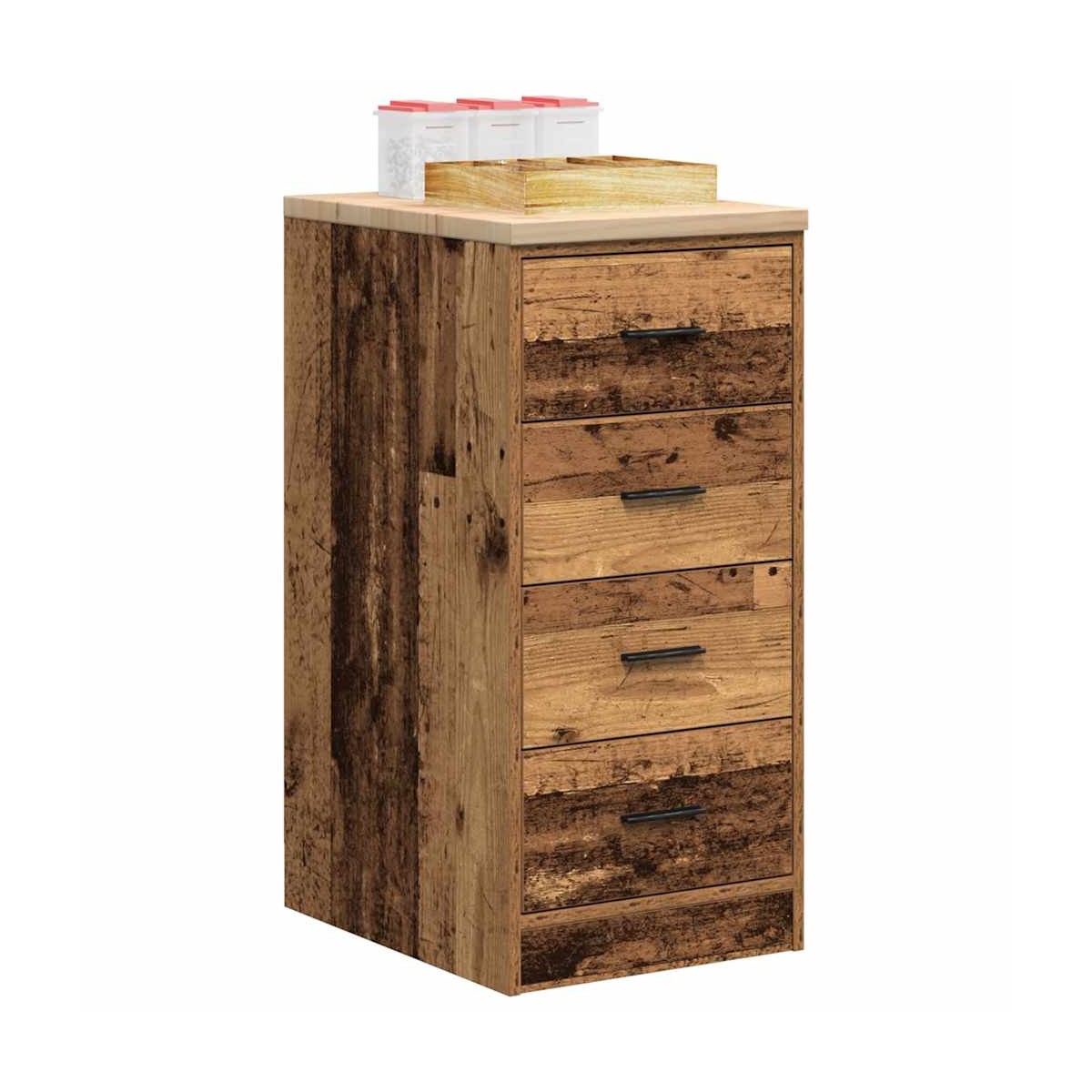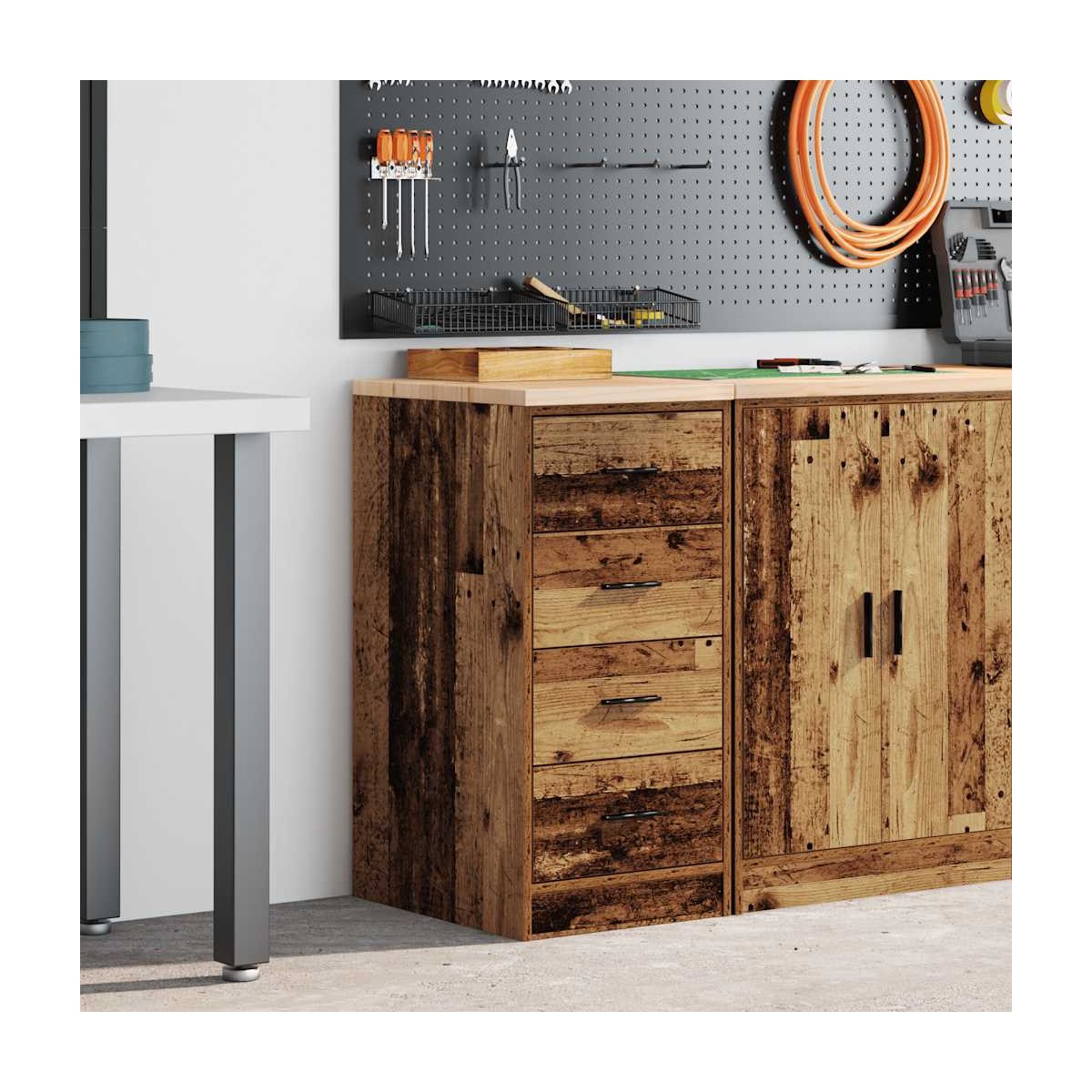 Este armario de almacenamiento de garaje es una excelente opción para organizar todas sus herramientas y materiales de bricolaje en el garaje, el trastero o el taller. Durable y de larga duración: este gabinete de garaje está hecho de madera de pino duradera y madera de ingeniería, lo que garantiza estabilidad y robustez para un uso duradero.Amplio espacio de almacenamiento: con cuatro cajones espaciosos, este gabinete de herramientas le permite mantener las herramientas de uso frecuente al alcance de la mano, lo que hace que sea conveniente acceder a todo lo que necesita para su próximo proyecto.Superficie de trabajo versátil: la encimera de madera proporciona una superficie resistente para diversas tareas, como reparaciones, montajes o proyectos de bricolaje.Fácil de mantener: Gracias a su superficie lisa, el armario es fácil de limpiar con un paño húmedo y requiere menos mantenimiento.Amplias aplicaciones: este gabinete de almacenamiento de garaje proporciona mucho espacio seguro, lo que lo hace ideal para organizar artículos en diversos entornos, como garajes, oficinas, lavaderos, despensas, sótanos o talleres. Advertencia:Para evitar que vuelque, este producto debe usarse con el dispositivo de fijación a la pared suministrado.