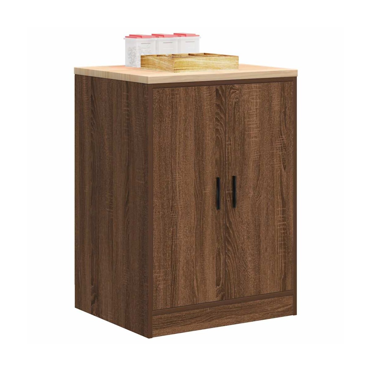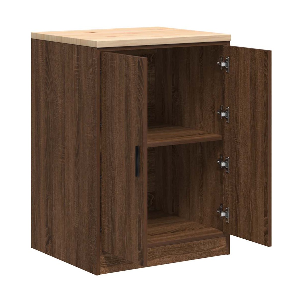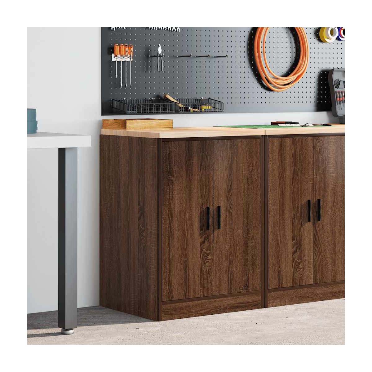 Este armario de almacenamiento de garaje es una excelente opción para organizar todas sus herramientas y materiales de bricolaje en el garaje, el trastero o el taller. Durable y de larga duración: este gabinete de garaje está hecho de madera de pino duradera y madera de ingeniería, lo que garantiza estabilidad y robustez para un uso duradero.Amplio espacio de almacenamiento: con 2 compartimentos de almacenamiento detrás de las puertas, este gabinete de herramientas le permite mantener sus herramientas de uso frecuente a su alcance, lo que hace que sea conveniente acceder a todo lo que necesita para su próximo proyecto.Superficie de trabajo versátil: la encimera de madera proporciona una superficie resistente para diversas tareas, como reparaciones, montajes o proyectos de bricolaje.Fácil de mantener: Gracias a su superficie lisa, el armario es fácil de limpiar con un paño húmedo y requiere menos mantenimiento.Amplias aplicaciones: este gabinete de almacenamiento de garaje proporciona mucho espacio seguro, lo que lo hace ideal para organizar artículos en diversos entornos, como garajes, oficinas, lavaderos, despensas, sótanos o talleres. Advertencia:Para evitar que vuelque, este producto debe usarse con el dispositivo de fijación a la pared suministrado.