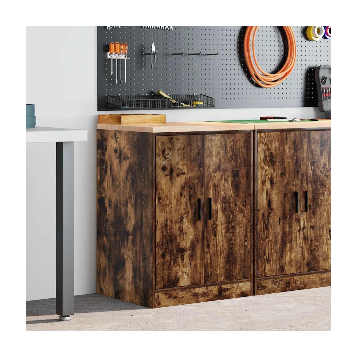 Este armario de almacenamiento de garaje es una excelente opción para organizar todas sus herramientas y materiales de bricolaje en el garaje, el trastero o el taller. Durable y de larga duración: este gabinete de garaje está hecho de madera de pino duradera y madera de ingeniería, lo que garantiza estabilidad y robustez para un uso duradero.Amplio espacio de almacenamiento: con 2 compartimentos de almacenamiento detrás de las puertas, este gabinete de herramientas le permite mantener sus herramientas de uso frecuente a su alcance, lo que hace que sea conveniente acceder a todo lo que necesita para su próximo proyecto.Superficie de trabajo versátil: la encimera de madera proporciona una superficie resistente para diversas tareas, como reparaciones, montajes o proyectos de bricolaje.Fácil de mantener: Gracias a su superficie lisa, el armario es fácil de limpiar con un paño húmedo y requiere menos mantenimiento.Amplias aplicaciones: este gabinete de almacenamiento de garaje proporciona mucho espacio seguro, lo que lo hace ideal para organizar artículos en diversos entornos, como garajes, oficinas, lavaderos, despensas, sótanos o talleres. Advertencia:Para evitar que vuelque, este producto debe usarse con el dispositivo de fijación a la pared suministrado.