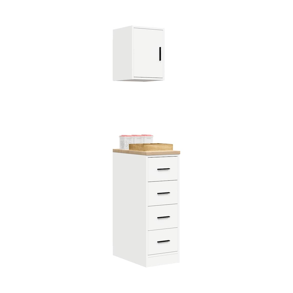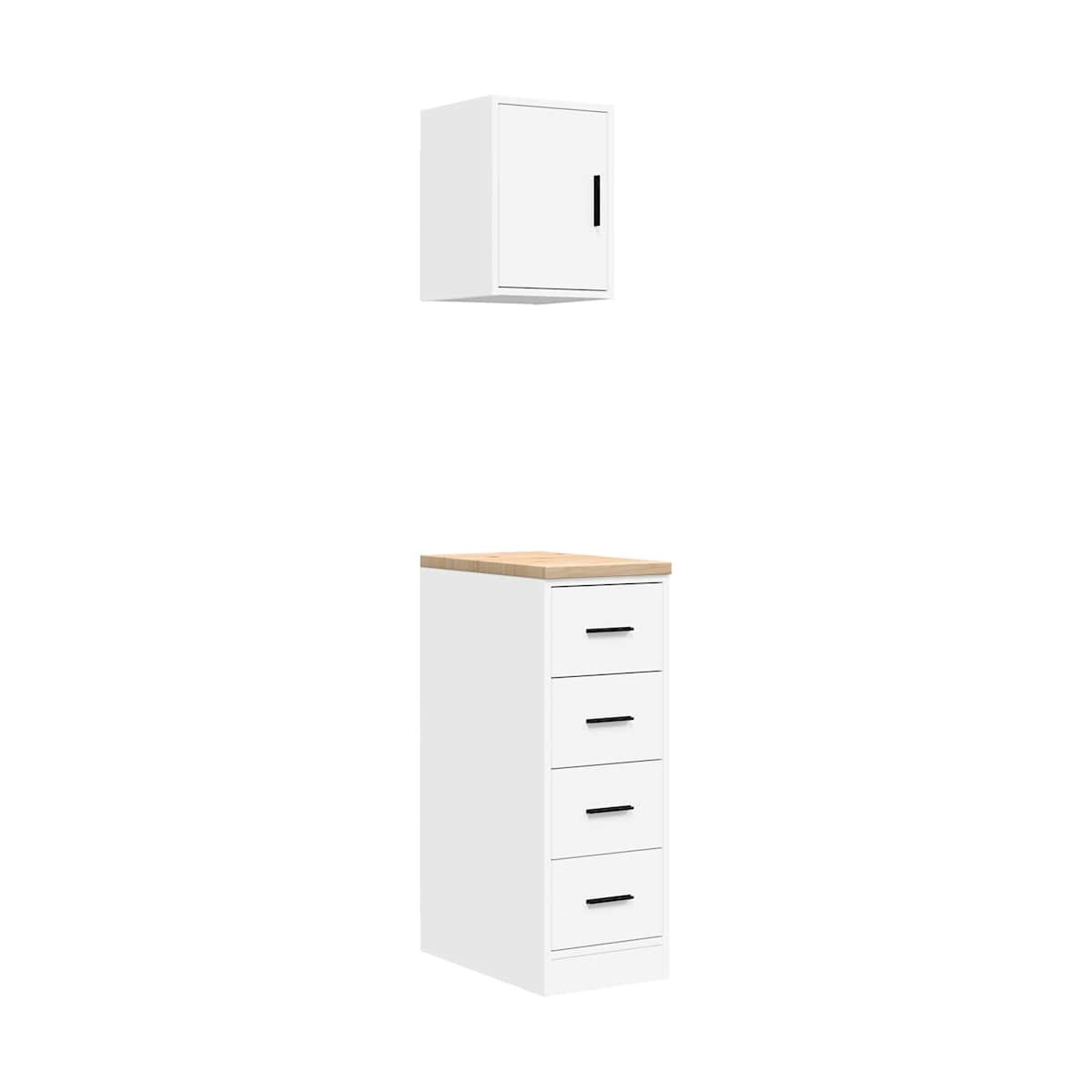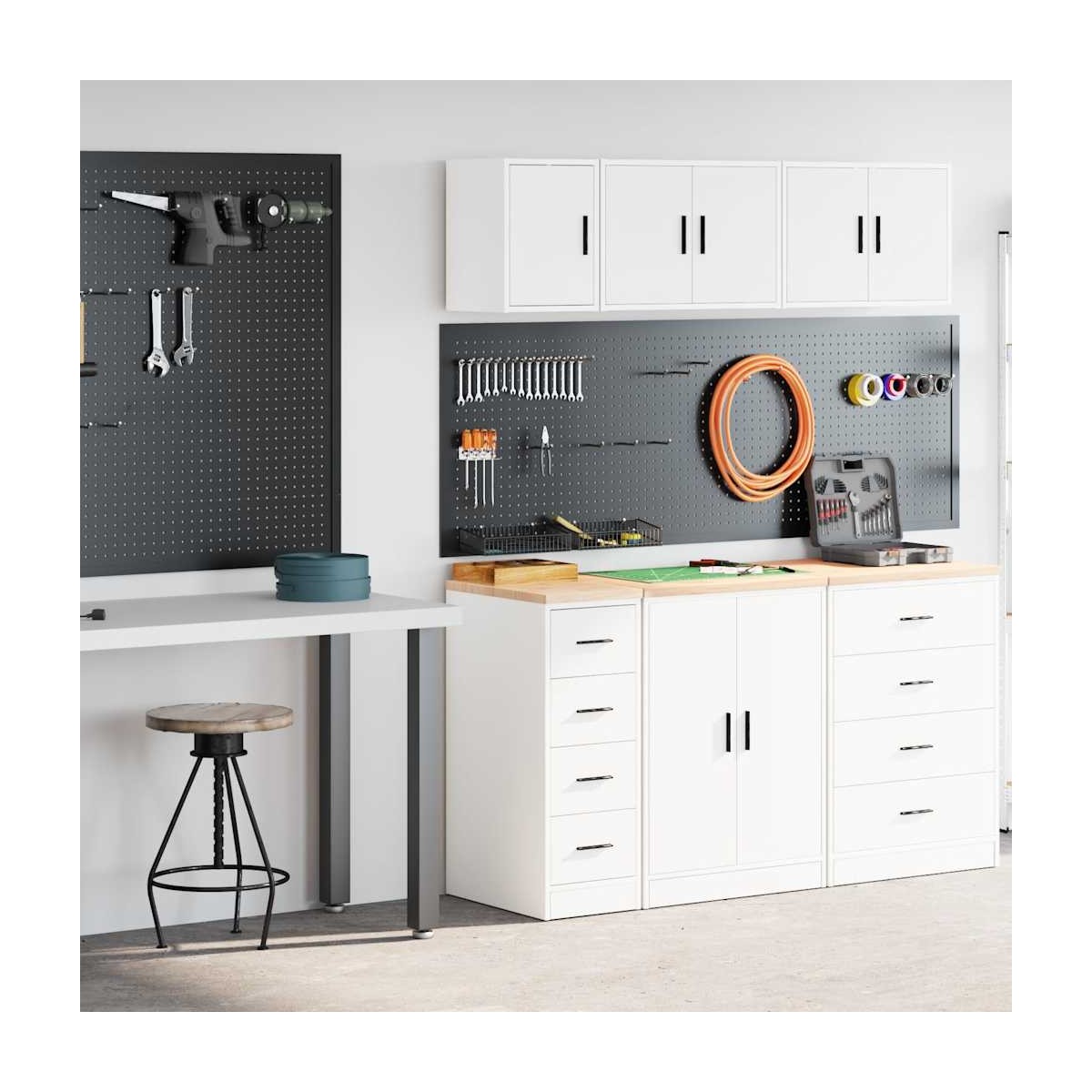Estos armarios de garaje son una excelente opción para organizar todas sus herramientas y materiales de bricolaje en el garaje, trastero o taller. Durable y de larga duración: este gabinete de garaje está hecho de madera de pino duradera y madera de ingeniería, lo que garantiza estabilidad y robustez para un uso duradero.Amplio espacio de almacenamiento: este gabinete de herramientas le permite mantener sus herramientas de uso frecuente a su alcance, lo que hace que sea conveniente acceder a todo lo que necesita para su próximo proyecto.Superficie de trabajo versátil: la encimera de madera proporciona una superficie resistente para diversas tareas, como reparaciones, montajes o proyectos de bricolaje.Fácil de mantener: Gracias a su superficie lisa, el armario es fácil de limpiar con un paño húmedo y requiere menos mantenimiento.Amplias aplicaciones: este gabinete de almacenamiento de garaje proporciona mucho espacio seguro, lo que lo hace ideal para organizar artículos en diversos entornos, como garajes, oficinas, lavaderos, despensas, sótanos o talleres.Opciones de montaje flexibles: Las puertas del compartimiento se pueden instalar a la izquierda o a la derecha según tu conveniencia y hábitos personales. Información útil:Los tornillos y los tacos para el interior de la pared no están incluidos. Recomendamos encontrar y utilizar tornillos y tacos adecuados específicamente para las paredes. Si no estás seguro, puedes consultar con un profesional. Lee y sigue cada paso de las instrucciones. Advertencia:Para evitar que vuelque, este producto debe usarse con el dispositivo de fijación a la pared suministrado.