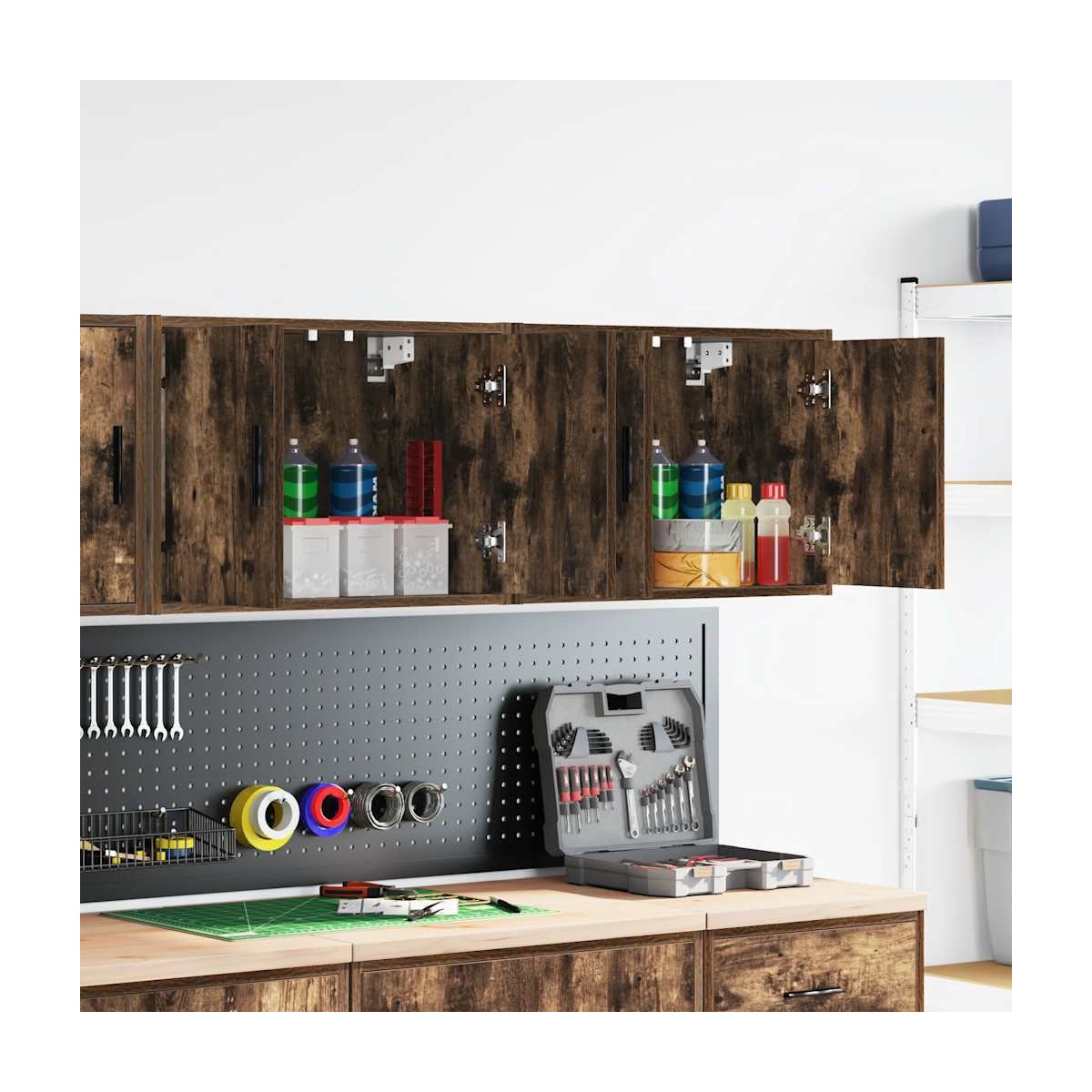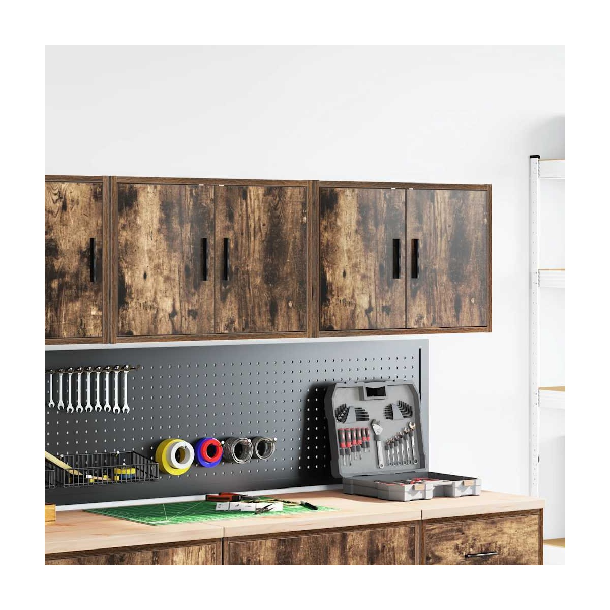 Estos gabinetes de pared para garaje son perfectos para guardar herramientas y accesorios sin ocupar espacio en el piso. Material estable y duradero: La madera de ingeniería es un material duradero y estable con una superficie lisa que es resistente a la humedad, la deformación y la rotura, lo que la convierte en una opción fiable para una variedad de proyectos.Amplio espacio de almacenamiento: con un espacioso compartimento detrás de la puerta, el armario de pared del garaje ofrece fácil acceso a sus herramientas y accesorios.Práctica puerta: La puerta ayuda a mantener un espacio limpio y organizado ocultando pequeños objetos esenciales y desorden detrás de ellos.Fácil de mantener: Gracias a su superficie lisa, el armario es fácil de limpiar con un paño húmedo y requiere menos mantenimiento.Amplias aplicaciones: este gabinete de almacenamiento de garaje proporciona mucho espacio seguro, lo que lo hace ideal para organizar artículos en diversos entornos, como garajes, oficinas, lavaderos, despensas, sótanos o talleres. Información útil:Los tornillos y los tacos para el interior de la pared no están incluidos. Recomendamos encontrar y utilizar tornillos y tacos adecuados específicamente para las paredes. Si no estás seguro, puedes consultar con un profesional. Lee y sigue cada paso de las instrucciones.