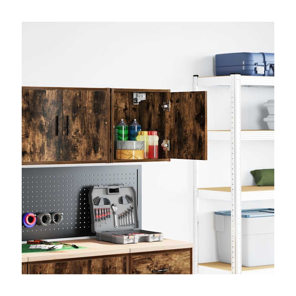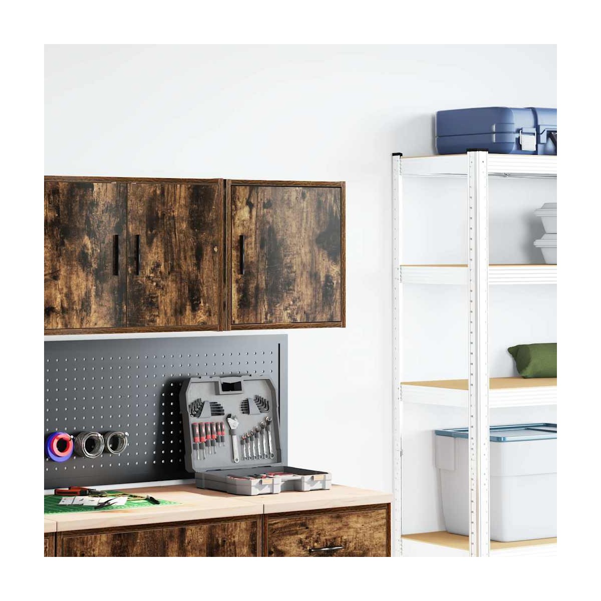 Este armario de pared para garaje es perfecto para guardar herramientas y accesorios sin ocupar espacio en el suelo. Material estable y duradero: La madera de ingeniería es un material duradero y estable con una superficie lisa que es resistente a la humedad, la deformación y la rotura, lo que la convierte en una opción fiable para una variedad de proyectos.Amplio espacio de almacenamiento: con un espacioso compartimento detrás de la puerta, el armario de pared del garaje ofrece fácil acceso a sus herramientas y accesorios.Práctica puerta: La puerta ayuda a mantener un espacio limpio y organizado ocultando pequeños objetos esenciales y desorden detrás de ellos.Fácil de mantener: Gracias a su superficie lisa, el armario es fácil de limpiar con un paño húmedo y requiere menos mantenimiento.Amplias aplicaciones: este gabinete de almacenamiento de garaje proporciona mucho espacio seguro, lo que lo hace ideal para organizar artículos en diversos entornos, como garajes, oficinas, lavaderos, despensas, sótanos o talleres. Información útil:Los tornillos y los tacos para el interior de la pared no están incluidos. Recomendamos encontrar y utilizar tornillos y tacos adecuados específicamente para las paredes. Si no estás seguro, puedes consultar con un profesional. Lee y sigue cada paso de las instrucciones.