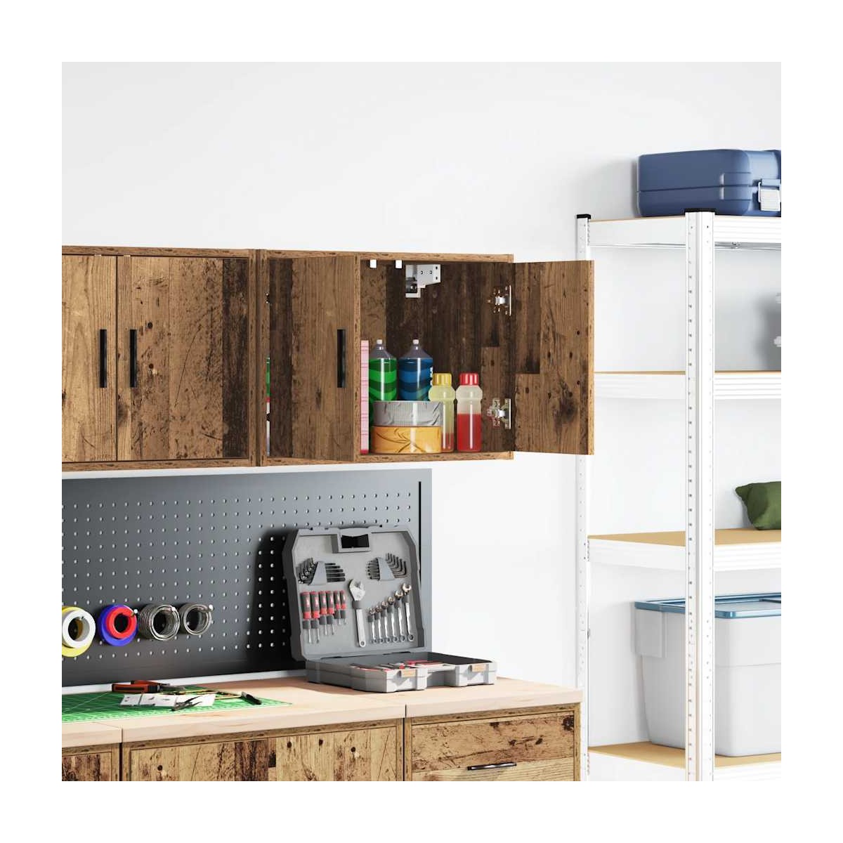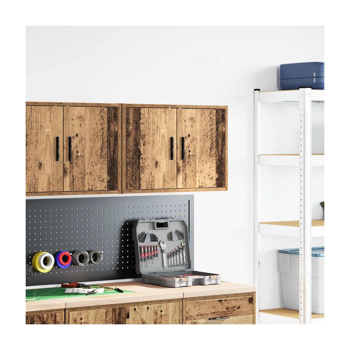 Este armario de pared para garaje es perfecto para guardar herramientas y accesorios sin ocupar espacio en el suelo. Material estable y duradero: La madera de ingeniería es un material duradero y estable con una superficie lisa que es resistente a la humedad, la deformación y la rotura, lo que la convierte en una opción fiable para una variedad de proyectos.Amplio espacio de almacenamiento: con un espacioso compartimento detrás de la puerta, el armario de pared del garaje ofrece fácil acceso a sus herramientas y accesorios.Práctica puerta: La puerta ayuda a mantener un espacio limpio y organizado ocultando pequeños objetos esenciales y desorden detrás de ellos.Fácil de mantener: Gracias a su superficie lisa, el armario es fácil de limpiar con un paño húmedo y requiere menos mantenimiento.Amplias aplicaciones: este gabinete de almacenamiento de garaje proporciona mucho espacio seguro, lo que lo hace ideal para organizar artículos en diversos entornos, como garajes, oficinas, lavaderos, despensas, sótanos o talleres. Información útil:Los tornillos y los tacos para el interior de la pared no están incluidos. Recomendamos encontrar y utilizar tornillos y tacos adecuados específicamente para las paredes. Si no estás seguro, puedes consultar con un profesional. Lee y sigue cada paso de las instrucciones.