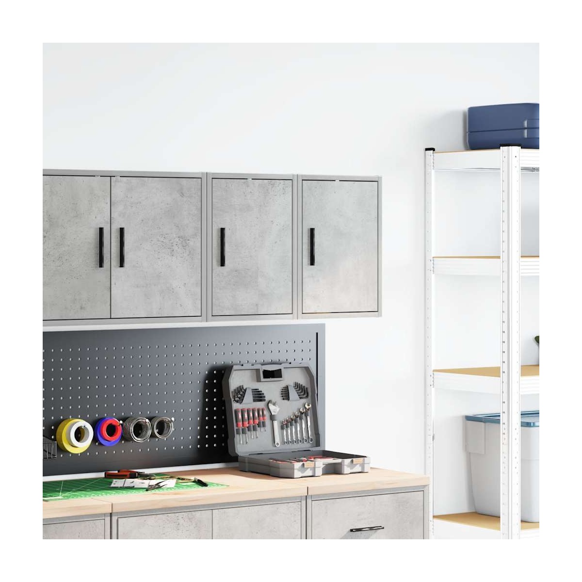 Estos gabinetes de pared para garaje son perfectos para guardar herramientas y accesorios sin ocupar espacio en el piso. Material estable y duradero: La madera de ingeniería es un material duradero y estable con una superficie lisa que es resistente a la humedad, la deformación y la rotura, lo que la convierte en una opción fiable para una variedad de proyectos.Amplio espacio de almacenamiento: con un espacioso compartimento detrás de la puerta, el armario de pared del garaje ofrece fácil acceso a sus herramientas y accesorios.Práctica puerta: La puerta ayuda a mantener un espacio limpio y organizado ocultando pequeños objetos esenciales y desorden detrás de ellos.Fácil de mantener: Gracias a su superficie lisa, el armario es fácil de limpiar con un paño húmedo y requiere menos mantenimiento.Amplias aplicaciones: este gabinete de almacenamiento de garaje proporciona mucho espacio seguro, lo que lo hace ideal para organizar artículos en diversos entornos, como garajes, oficinas, lavaderos, despensas, sótanos o talleres. Información útil:Los tornillos y los tacos para el interior de la pared no están incluidos. Recomendamos encontrar y utilizar tornillos y tacos adecuados específicamente para las paredes. Si no estás seguro, puedes consultar con un profesional. Lee y sigue cada paso de las instrucciones.