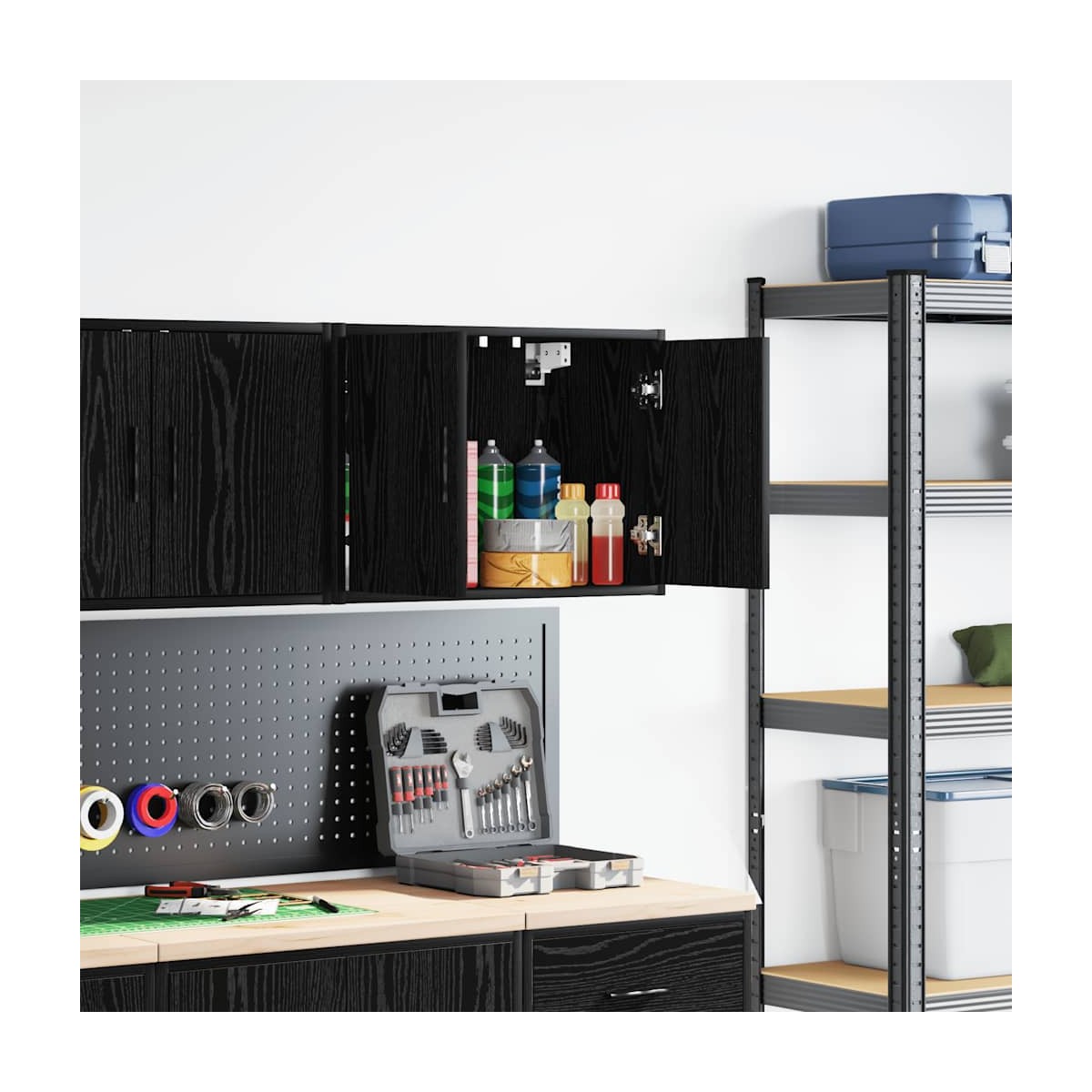 Este armario de pared para garaje es perfecto para guardar herramientas y accesorios sin ocupar espacio en el suelo. Material estable y duradero: La madera de ingeniería es un material duradero y estable con una superficie lisa que es resistente a la humedad, la deformación y la rotura, lo que la convierte en una opción fiable para una variedad de proyectos.Amplio espacio de almacenamiento: con un espacioso compartimento detrás de la puerta, el armario de pared del garaje ofrece fácil acceso a sus herramientas y accesorios.Práctica puerta: La puerta ayuda a mantener un espacio limpio y organizado ocultando pequeños objetos esenciales y desorden detrás de ellos.Fácil de mantener: Gracias a su superficie lisa, el armario es fácil de limpiar con un paño húmedo y requiere menos mantenimiento.Amplias aplicaciones: este gabinete de almacenamiento de garaje proporciona mucho espacio seguro, lo que lo hace ideal para organizar artículos en diversos entornos, como garajes, oficinas, lavaderos, despensas, sótanos o talleres. Información útil:Los tornillos y los tacos para el interior de la pared no están incluidos. Recomendamos encontrar y utilizar tornillos y tacos adecuados específicamente para las paredes. Si no estás seguro, puedes consultar con un profesional. Lee y sigue cada paso de las instrucciones.