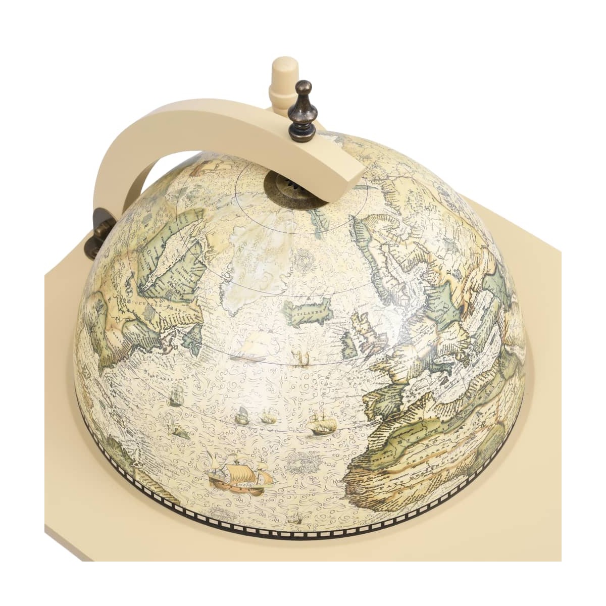 El globo de madera se abre para revelar un gran bar con suficiente espacio para vinos, licores, bebidas y copas, por lo que puede exhibir sus botellas y vasos en un lugar oculto a la vez que garantiza un fácil acceso. Equipado con una mesa extendida y la base inferior, también puede colocar botellas y copas en la mesa o en la base inferior. La superficie exterior del mueble bar está decorada con un viejo mapa náutico, mientras que la mesa, la base y el interior del globo muestran pinturas de la época renacentista, lo que hace que el mueble sea una obra de arte y una buena decoración para el hogar o la oficina. El mueble está equipado con ruedas, por lo que es fácil de mover. Puedes mover el mueble botellero a cualquier rincón de su habitación con facilidad. Esta mueble bar de bola del mundo con mesa y ruedas es, sin duda, una combinación perfecta de almacenamiento y decoración.