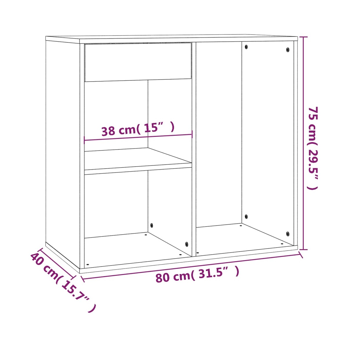 - Dimensiones: 80 x 40 x 75 cm (ancho x profundo x alto)