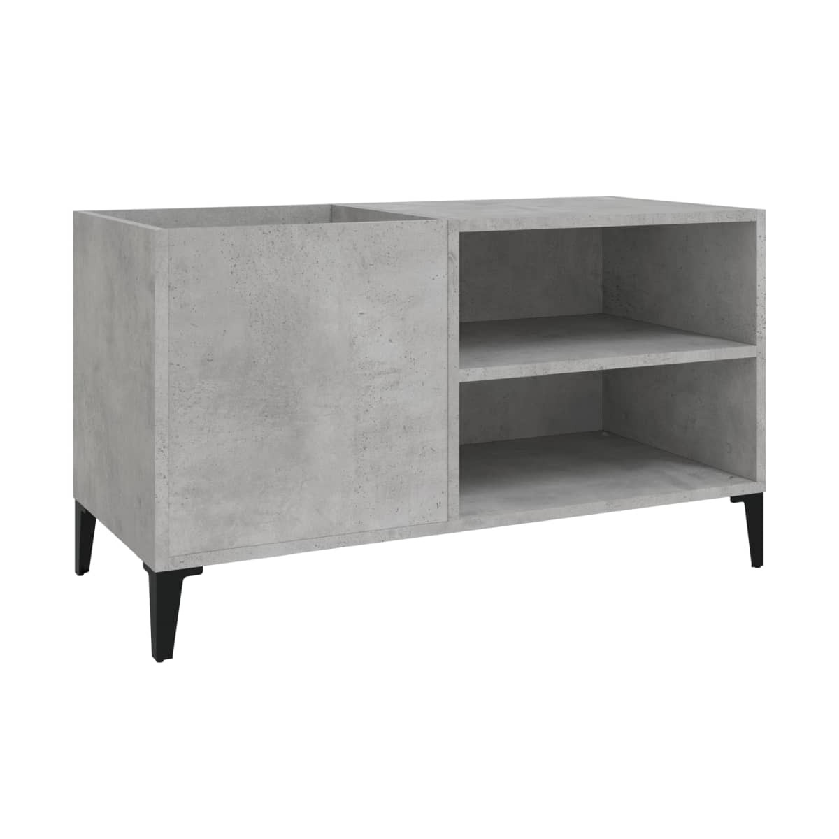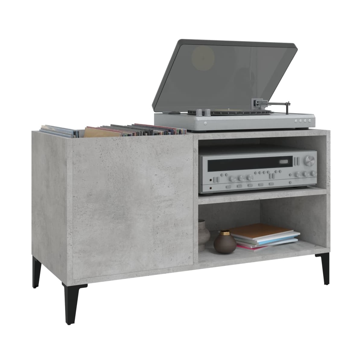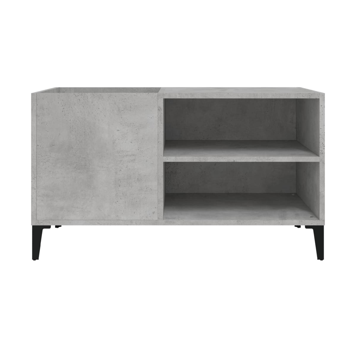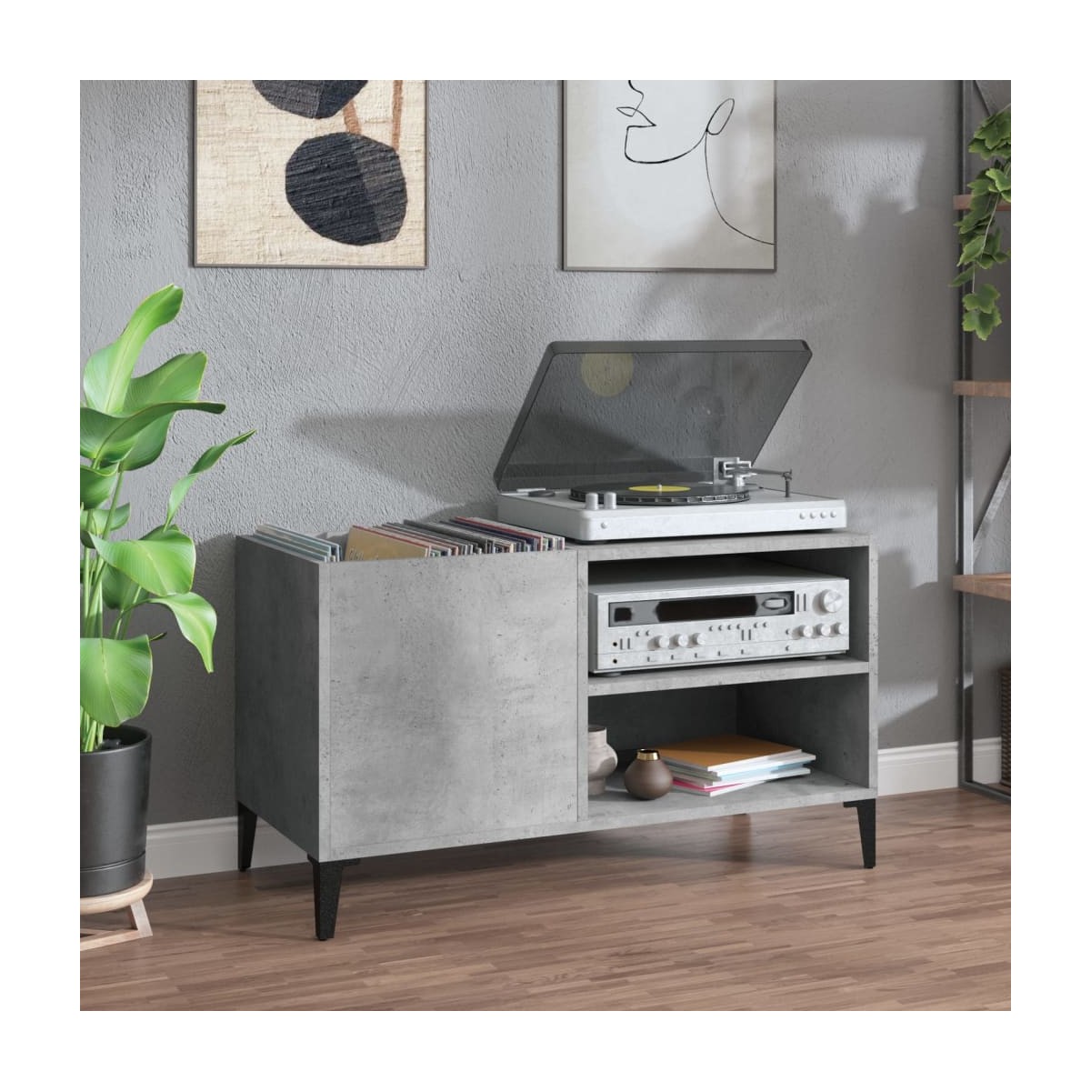 Almacena y presume de tus discos de vinilo con este práctico y clásico mueble para discos. Material duradero: La madera contrachapada tiene una calidad excepcional, con una superficie lisa y también cuenta con fuerza, estabilidad y resistencia a la humedad.Amplio espacio de almacenaje: El espacioso mueble para tocadiscos ofrece un amplio espacio de almacenaje para discos LP y mantiene tu colección de música bien organizada.Superficie resistente: La resistente superficie del armario para vinilos es ideal para colocar el tocadiscos u otros aparatos electrónicos.Múltiples funciones: Este armario para discos también se puede utilizar como mueble auxiliar en el salón o archivador en la oficina y el estudio.Patas metálicas: Las patas de metal le dan un estilo industrial a la casa mientras garantizan su estabilidad.