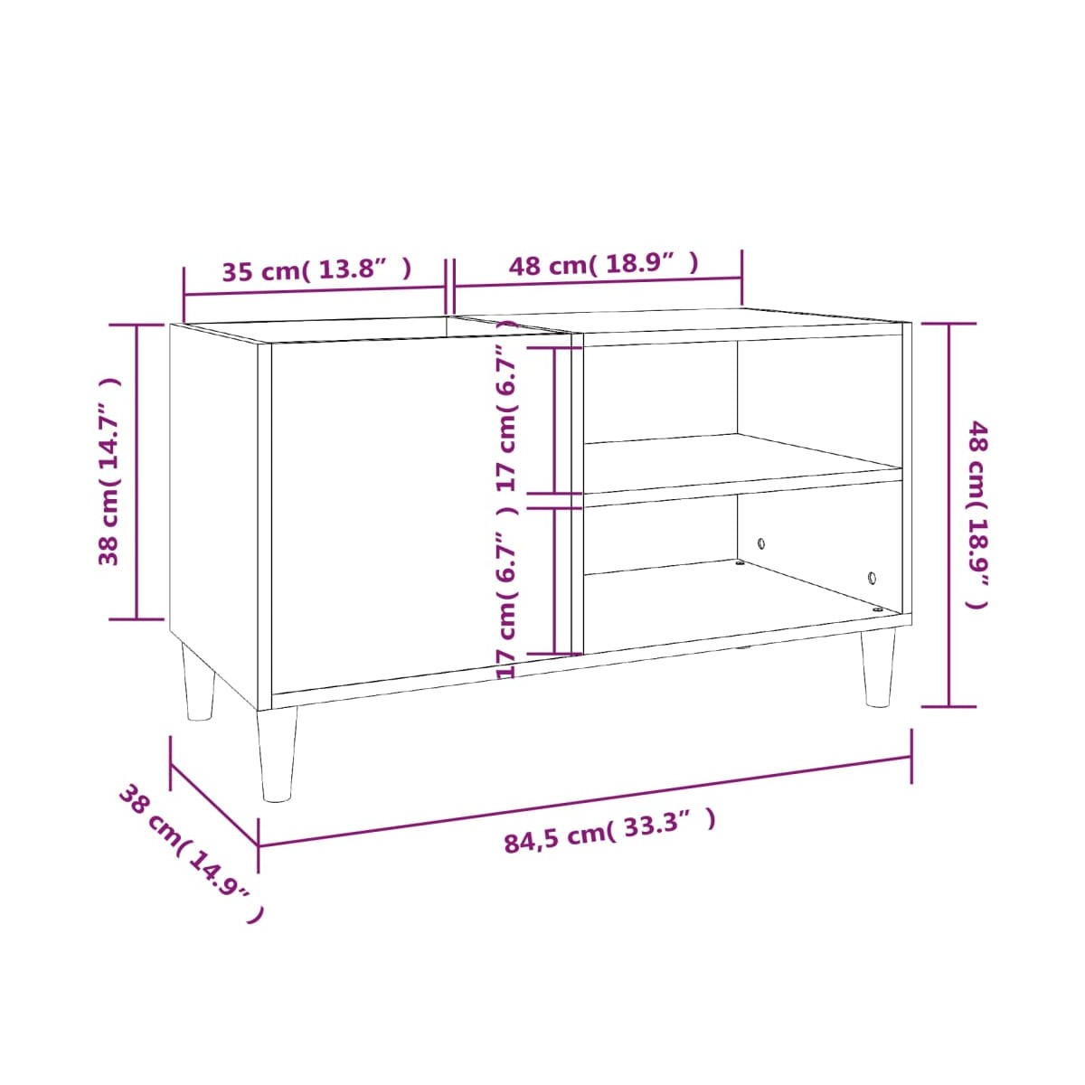 - Dimensiones: 84,5 x 38 x 48 cm (ancho x profundo x alto)