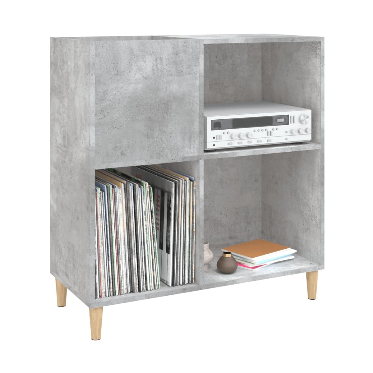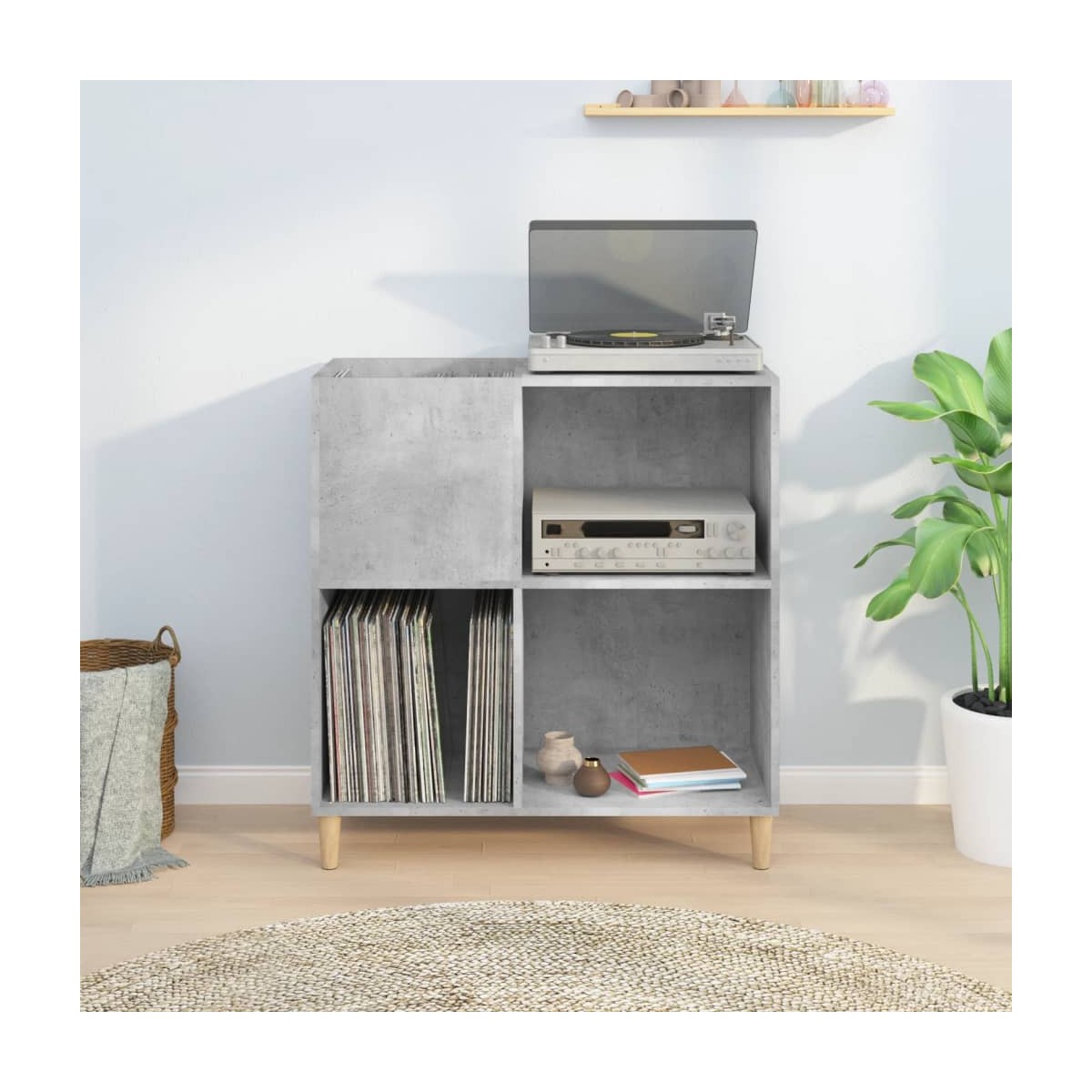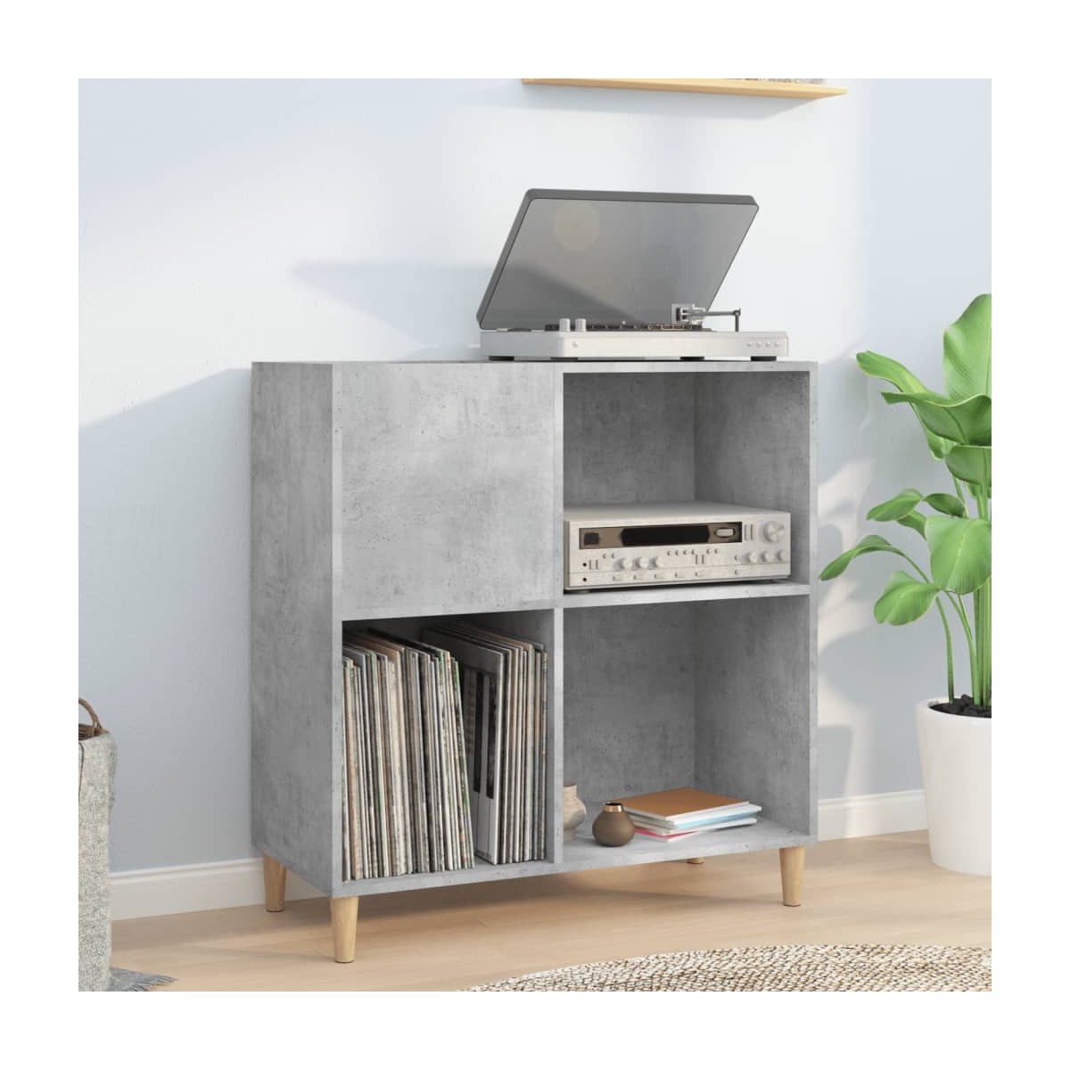 Almacena y presume de tus discos de vinilo con este práctico y clásico mueble para discos. Material duradero: La madera contrachapada tiene una calidad excepcional, con una superficie lisa y también cuenta con fuerza, estabilidad y resistencia a la humedad.Amplio espacio de almacenaje: El espacioso mueble para tocadiscos ofrece un amplio espacio de almacenaje para discos LP y mantiene tu colección de música bien organizada.Superficie resistente: La resistente superficie del armario para vinilos es ideal para colocar el tocadiscos u otros aparatos electrónicos.Múltiples funciones: Este armario para guardar discos también se puede usar como vitrina, mueble auxiliar en el salón o archivador en la oficina y el estudio.Patas de madera: Las patas de madera confieren al mueble para discos de vinilo un aspecto natural y agradable, al tiempo que garantizan su estabilidad. Advertencia:Para evitar que vuelque, este producto debe usarse con el dispositivo de fijación a la pared incluido.