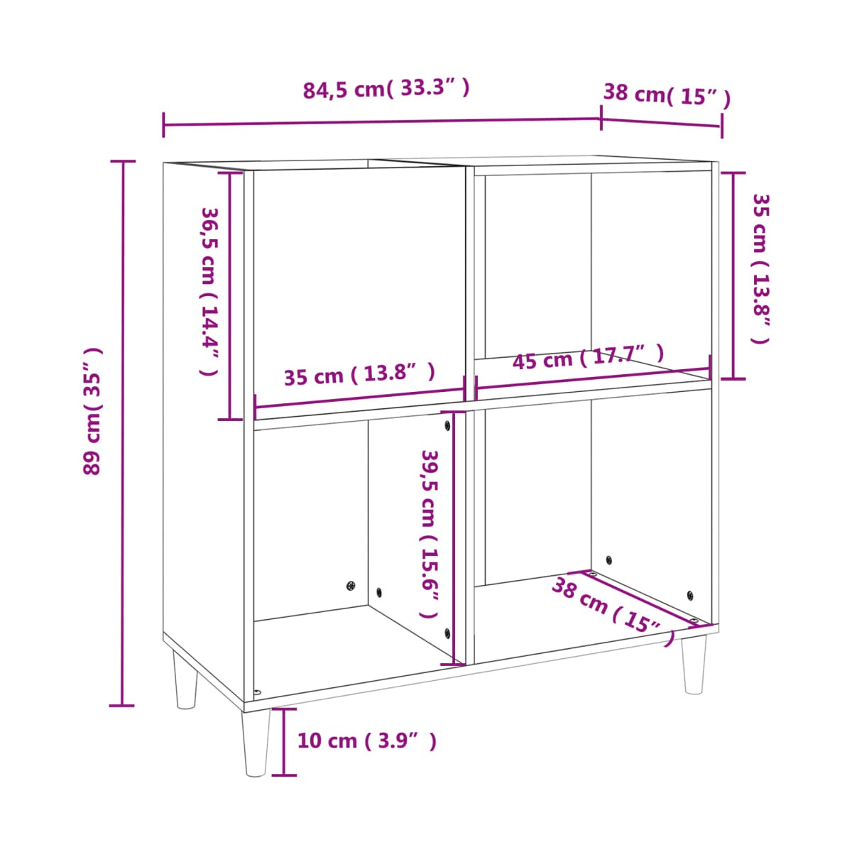 - Dimensiones: 84,5 x 38 x 89 cm (ancho x profundo x alto)
