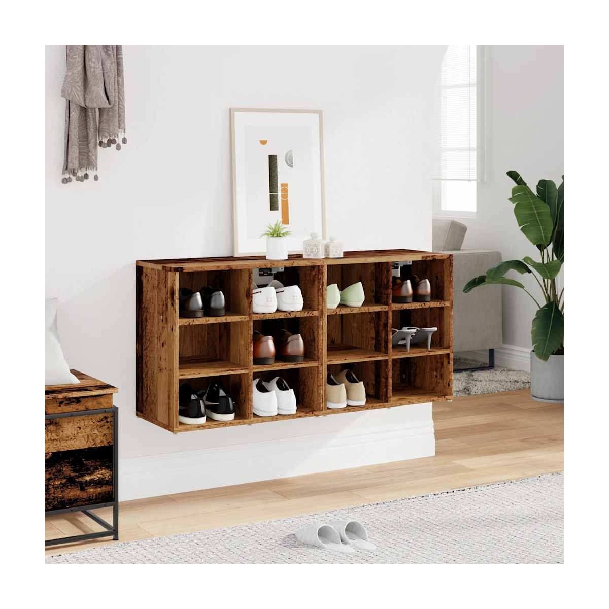 Estos imprescindibles muebles zapatero, con un diseño elegante, son un gran aporte para la casa y para mantener organizado el calzado. Material robusto: La madera de ingeniería tiene una calidad excepcional, con una superficie lisa y también cuenta con fuerza, estabilidad y resistencia a la humedad.Práctica función de almacenaje: Las estanterías para zapatos proporcionan 12 compartimentos para guardar el calzado y también lo mantiene bien ventilado.Modos de instalación flexibles: Estos armarios de almacenaje para zapatos se pueden colocar en el suelo de forma estable o montarlos sobre la pared para no ocupar espacio del suelo. Advertencia:Para evitar el vuelco, este producto debe usarse con el dispositivo provisto para fijarlo a la pared. Información útil:Los tornillos y los tacos para el interior de la pared no están incluidos. Busca y utiliza tornillos y tacos adecuados para tus paredes. Si no lo tienes claro, busca asesoramiento profesional. Lee y sigue cada paso de las instrucciones cuidadosamente.