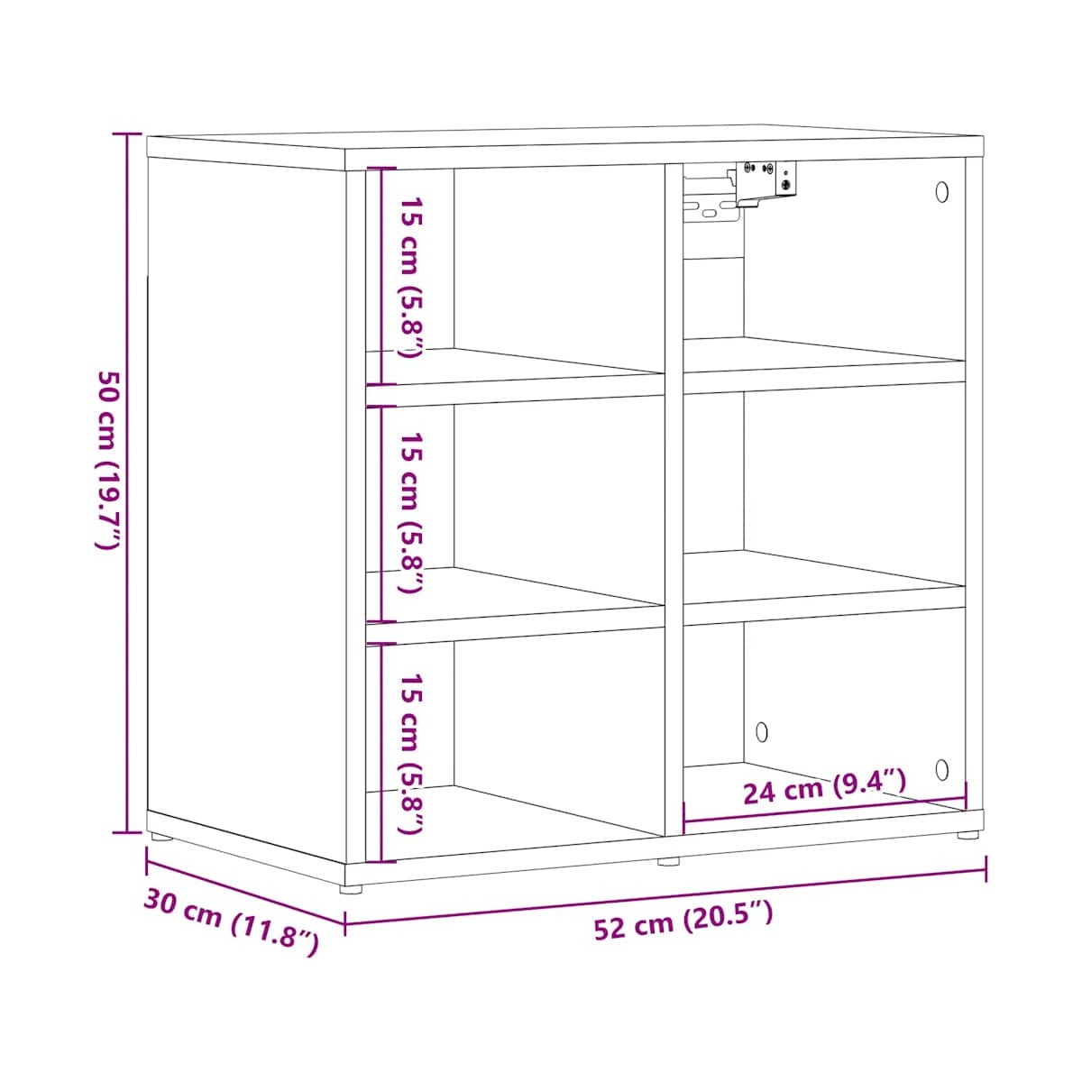 - Dimensiones: 52 x 30 x 50 cm (ancho x profundo x alto)