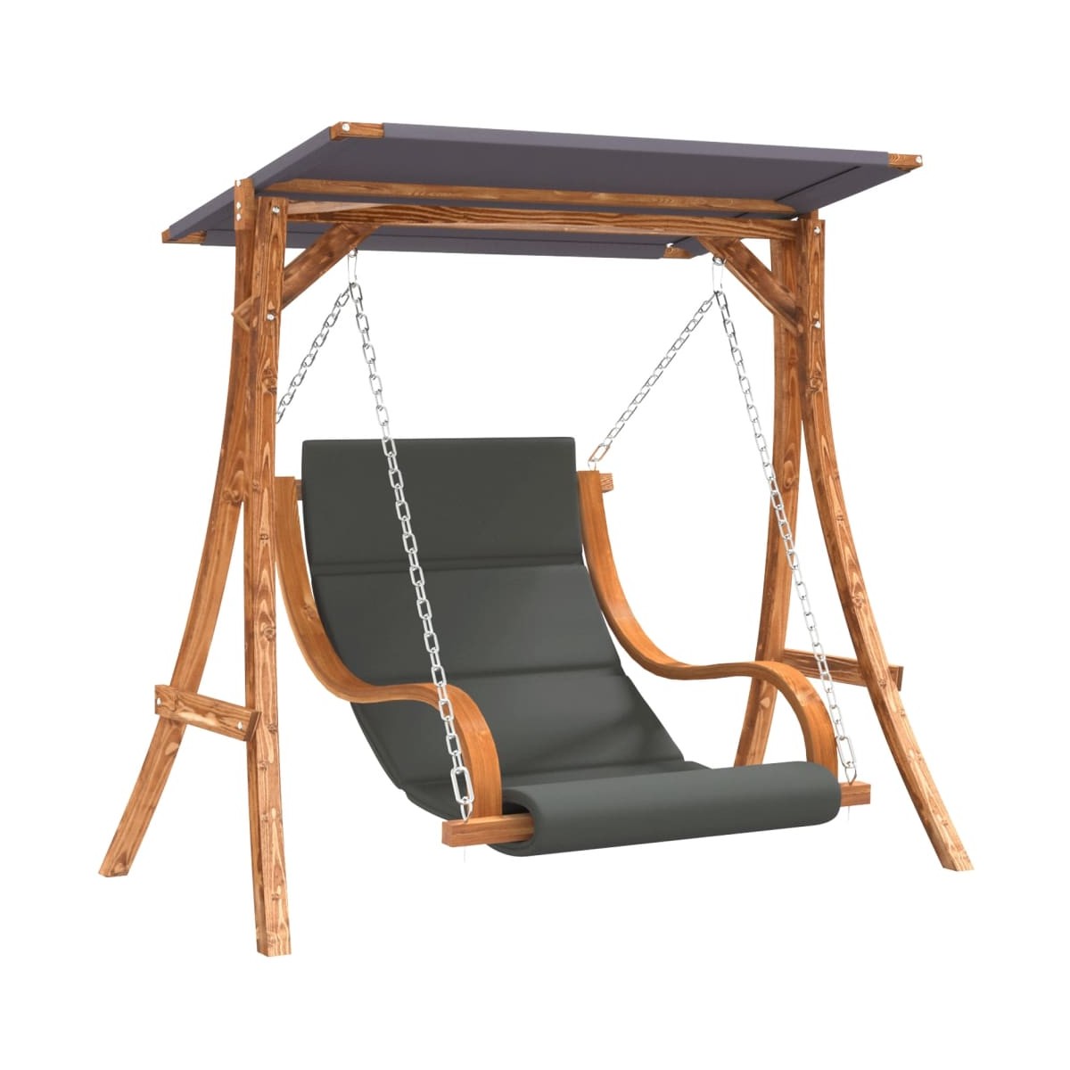 Este columpio de madera con cojín y toldo es la elección perfecta si estás buscando poder relajarte y disfrutar de espacios al aire libre. Estructura de madera maciza de abeto: Esta hamaca está hecha de madera maciza de abeto. La madera maciza de abeto es una madera blanda ligera, estable y resistente a la putrefacción. Tiene una textura fina y uniforme y unas vetas siempre rectas. El acabado de teca le da un aspecto de madera oscura.Respaldo y reposabrazos ergonómicos: El respaldo y los reposabrazos de la silla colgante tienen un diseño ergonómico que te aporta una comodidad óptima al sentarte.Movimiento de balanceo relajante: Relájese sentándose cómodamente mientras disfruta de un movimiento de balanceo suave y relajante.Cómodo asiento: El mullido cojín del columpio hamaca proporciona la máxima comodidad.Diseño con toldo: El columpio de exterior está equipado con un toldo de poliéster para protegerte de la luz solar directa mientras lees o te relajas en los días de verano. Información útil:La madera es un producto natural y puede presentar imperfecciones.