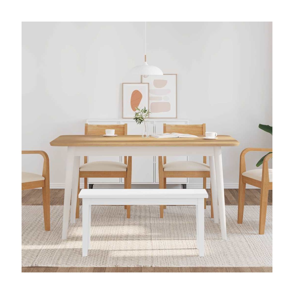 Este banco es perfecto para realzar cualquier espacio interior con un toque de elegancia. Robusto y estable: La madera maciza de caucho es un bonito material natural. La madera de caucho tiene un grano denso y es resistente a los golpes y duradera.Pies de madera: Los pies de madera proporcionan una excelente estabilidad a la vez que le dan al asiento del banco un aspecto natural y agradable.Experiencia de asiento cómoda: el asiento del banco cuenta con un cojín acolchado, lo que ofrece una experiencia de asiento cómoda al sentarse.Asientos versátiles: este banco de tela es ideal para cenar o como asiento adicional, y se adapta perfectamente a varios espacios interiores, agregando estilo y comodidad a cualquier habitación.