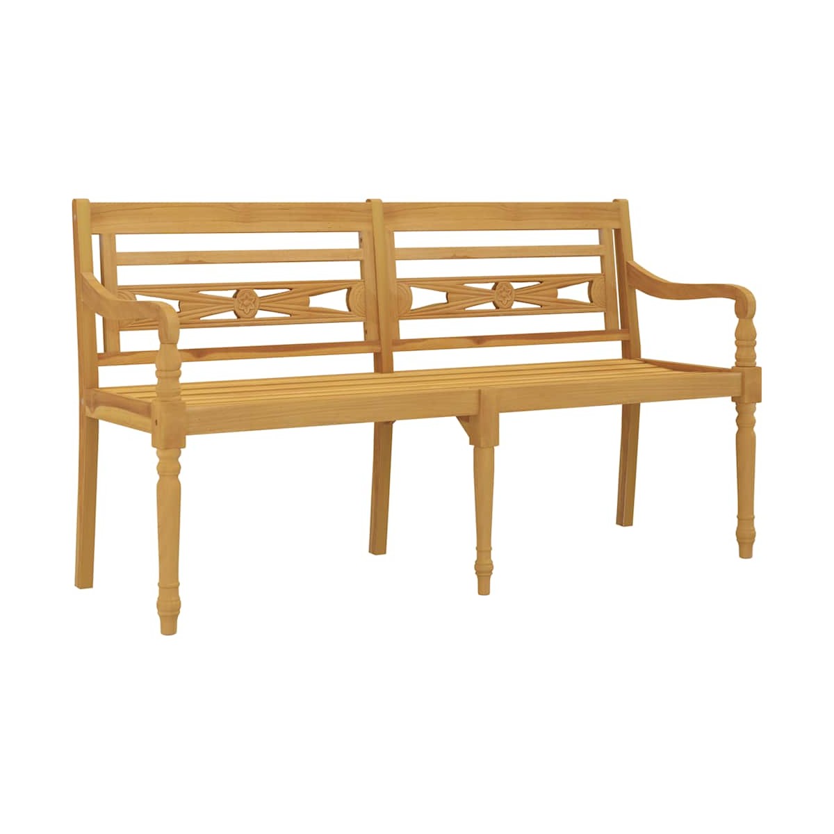 ¡Da un toque de elegancia al espacio al aire libre de tu casa con este banco Batavia de madera con cojín! Madera de teca natural: La madera maciza de teca es un bonito material natural. Ha sido curada, secada al horno y después lijada finamente para darle un aspecto muy suave. La madera de teca es conocida por su excepcional fuerza y resistencia a la intemperie.Material práctico: El tejido posee un aspecto sencillo y limpio, y es transpirable y duradero.Asiento cómodo: El banco cuenta con reposabrazos y un respaldo, que, junto con el cojín incluido, ofrecen un asiento confortable.Elegante diseño: El asiento tallado de forma exquisita dará un toque de encanto rústico al jardín y es muy adecuado para relajarse al aire libre con amigos y familiares. Nota:Cada producto viene con un manual de montaje en la caja para facilitar el montaje.Para prolongar la vida de tus muebles de exterior, te recomendamos que los protejas con una funda impermeable.