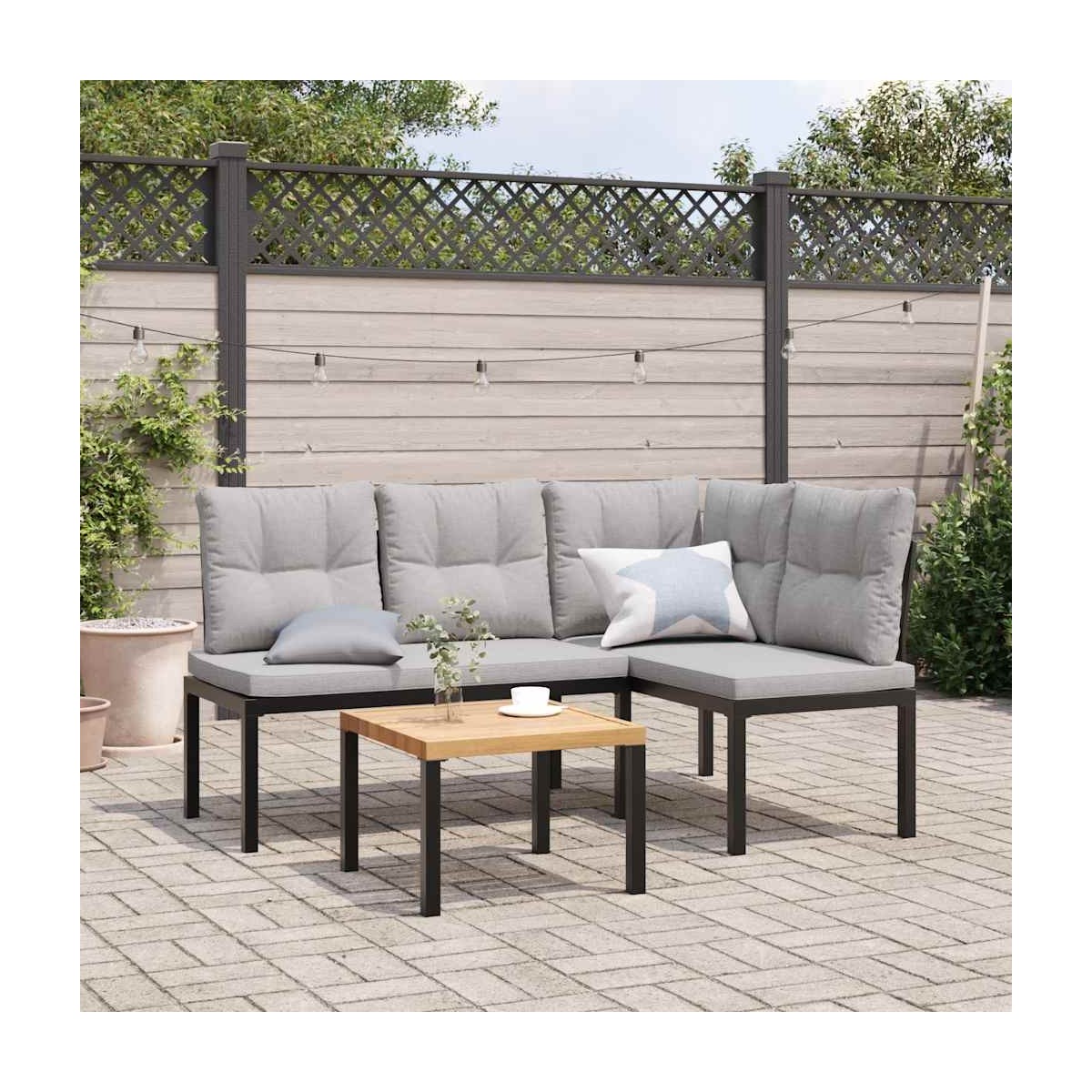 Estos bancos de jardín son perfectos para uso en exteriores y están diseñados para ser el foco de atención de tu jardín, terraza, patio, etc. Estructura robusta y estable: La estructura de acero con recubrimiento en polvo es fuerte, estable, duradero y resistente a la corrosión y a las inclemencias del tiempo, lo que garantiza un rendimiento duradero.Experiencia de asiento cómoda: Estos muebles de exterior, completos con cojines acolchados gruesos, ofrecen una experiencia de asiento cómoda.Funda desenfundable y lavable: Estos cojines de asiento cuentan con fundas desenfundables para facilitar el lavado y mantenimiento.Diseño modular: Este conjunto de muebles de exterior tiene un diseño modular, por lo que es completamente flexible y fácil de mover, para que puedas crear una disposición de muebles de exterior personalizada. Información útil:Para asegurarte de que tus muebles de exterior se mantengan hermosos, recomendamos protegerlos con una funda impermeable.