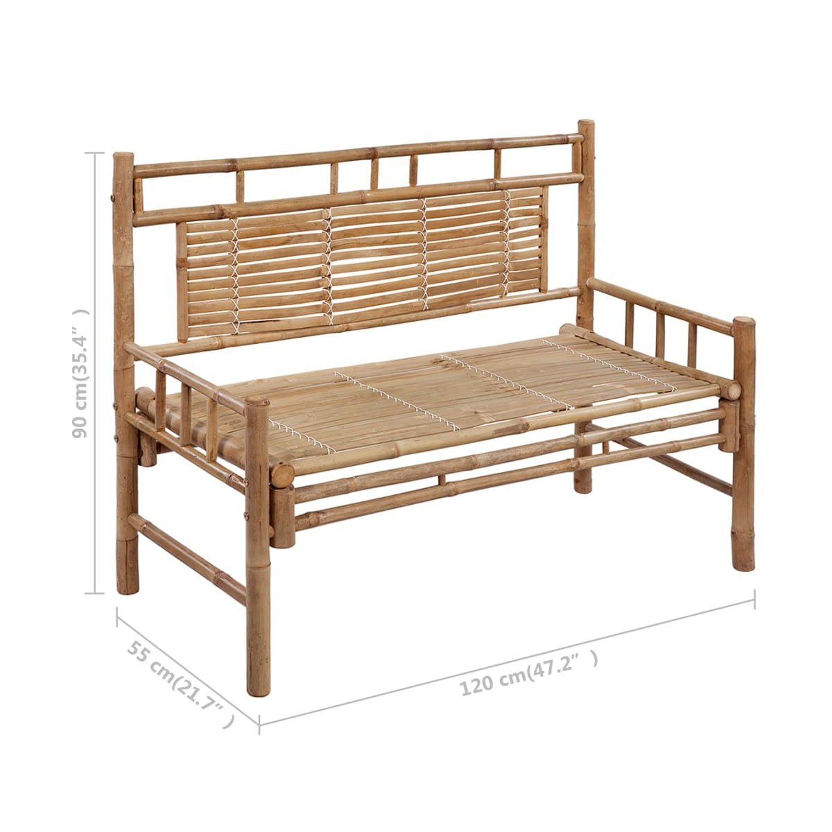 Este banco clásico de bambú será un gran aporte para tu jardín o cualquier otro espacio al aire libre. El banco de exterior ha sido diseñado con un respaldo, por lo que te puedes sentarte cómodamente mientras lees o descansas. Hecho de bambú impermeable y resistente a la intemperie, el banco de jardín es duradero y estable. También es fácil de limpiar con un paño húmedo. Además, el cojín incluido proporciona un plus de confort mientras descansas. Está hecho 100% de poliéster, tratado para ser impermeable. Cada cojín tiene dos juegos de cuerdas para fijarlo firmemente al banco. Nota: Para prolongar la vida útil de los muebles de exterior, te recomendamos que los limpies con regularidad y no los dejes al aire libre sin protección innecesariamente.Limpieza: Usa una solución de jabón suaveAlmacenamiento: Si es posible, guarda el producto en un lugar fresco y seco en el interior. Si el producto se almacena al aire libre, protégelo con una funda impermeable. Limpia y seca el exceso de agua o nieve de las superficies planas después de una lluvia o nevada. Permite la ventilación para evitar daños relacionados con la humedad.