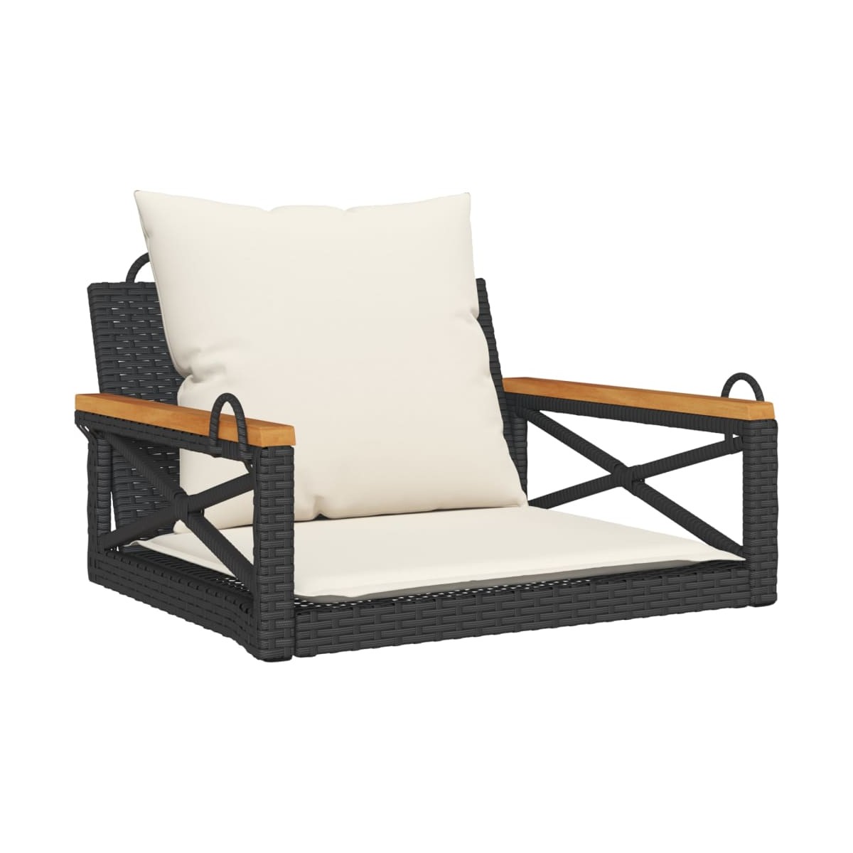 Este banco columpio con cojines es la elección perfecta si estás buscando poder relajarte y disfrutar de espacios al aire libre. Material duradero: El ratán PE, también conocido como ratán sintético, es un material sintético resistente y de bajo mantenimiento que se parece al ratán natural. Es ligero, fácil de limpiar y se usa comúnmente para muebles de exterior debido a su durabilidad y propiedades resistentes a la intemperie.Experiencia de asiento cómoda: Estos muebles de exterior, completos con cojines acolchados gruesos, ofrecen una experiencia de asiento cómoda.Función de columpio: Experimenta la máxima relajación mientras te meces suavemente con la brisa en el asiento colgante con función de columpio.Prácticos anillos de fijación: Los muebles de exterior están equipados con anillos de fijación, lo que hace que sea conveniente colgarlos en árboles grandes, soportes y otros objetos resistentes.Estructura robusta y estable: La estructura de acero con recubrimiento en polvo garantiza que el mueble de jardín sea resistente y estable para usarlo a diario al aire libre. Información útil:Para asegurarte de que tus muebles de exterior se mantengan hermosos, recomendamos protegerlos con una funda impermeable.La entrega incluye sólo un banco de columpio. La estructura del columpio y las cadenas para colgar no están incluidas.