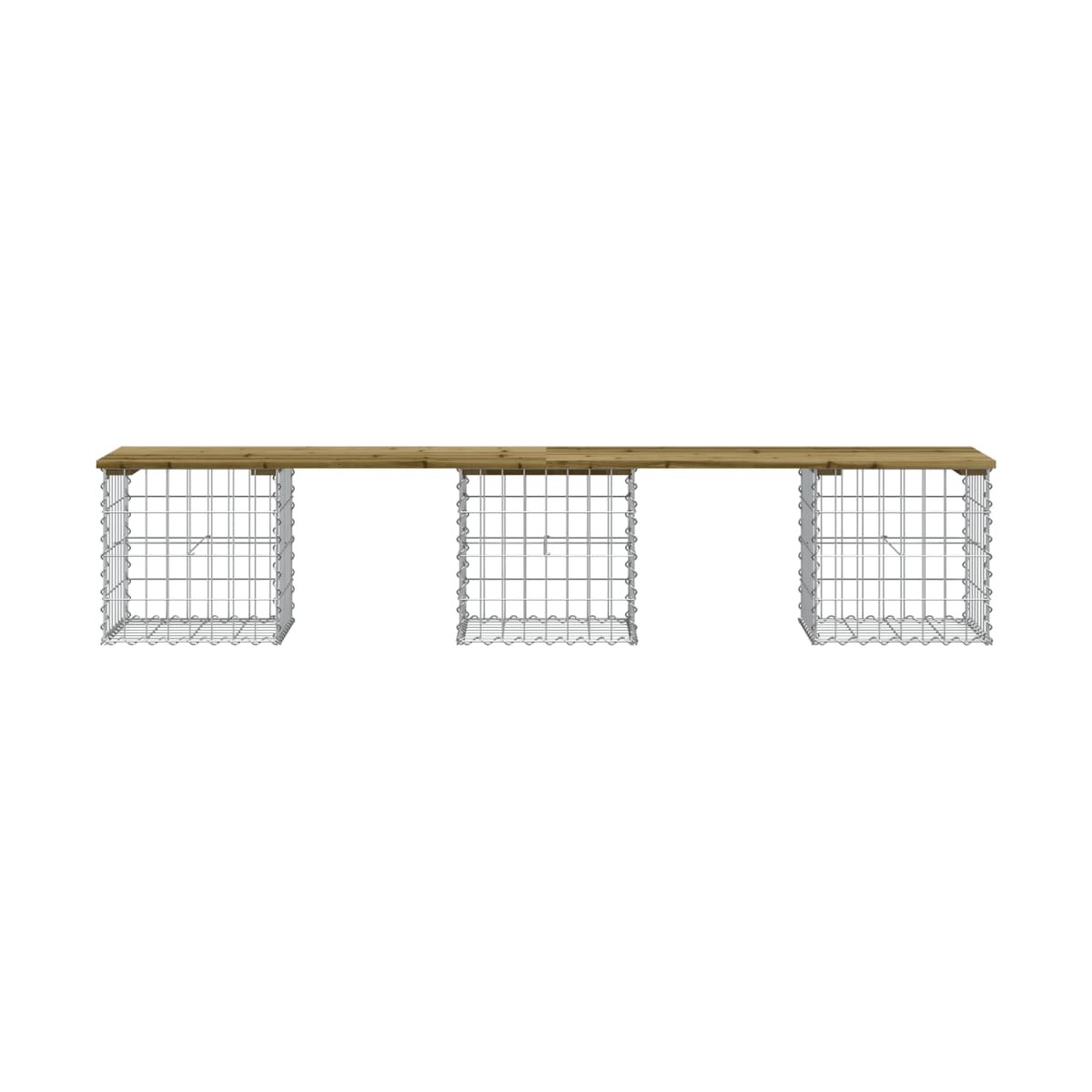 ¡Crea tu propio espacio para sentarte al aire libre con este banco de jardín!Este banco de jardín llamará la atención en tu espacio al aire libre. Madera impregnada: La parte superior del asiento de jardín es de madera de pino impregnada al vacío con el fin de lograr una mayor durabilidad. La madera maciza de pino es un hermoso material natural. Tiene vetas rectas y los nudos le dan un aspecto rústico característico. La impregnación es un proceso de conservación que se realiza mediante autoclaves. El tratamiento a presión aumenta la resistencia a la putrefacción y a la intemperie.Base resistente y estable: Este banco de exterior cuenta con una base de cesta de gaviones de acero galvanizado que está diseñada para llenarse con rocas y grava para una belleza adicional.La rejilla de malla de la cesta de gaviones está soldada con alambres transversales y longitudinales en cada intersección para mayor estabilidad.Diseño compacto: Este banco de jardín es perfecto para un espacio limitado gracias a su diseño estrecho y compacto.Amplia gama de usos: Este banco de parque es adecuado para jardines, patios traseros, espacios de patio, ubicaciones de esquinas secretas y más. Información útil:Para asegurarte de que tus muebles de exterior se mantengan hermosos, recomendamos protegerlos con una funda impermeable.