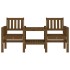 Disfruta de veladas románticas en el banco para jardín con mesita integrada para copas de vino, aperitivos o café. Madera maciza de pino: El banco de jardín con mesita está hecho de madera maciza de pino para ofrecer una mayor solidez y estabilidad. La madera maciza de pino es un bonito material natural. La madera de pino tiene vetas rectas y los nudos le dan su distintivo aspecto rústico.Cómodo asiento: Con reposabrazos y un respaldo, el banco de exterior con mesa te proporciona la máxima comodidad.Práctica mesa integrada: La mesa integrada y el estante inferior entre los dos asientos son ideales para guardar bebidas, aperitivos, revistas y otros objetos que quieras tener al alcance de la mano.Diseño de listones: El diseño de listones del banco exterior evita la acumulación de agua y, así, mantiene el asiento seco y evita que se pudra innecesariamente. Información útil:Para asegurarte de que tus muebles de exterior se mantengan hermosos, recomendamos protegerlos con una funda impermeable.