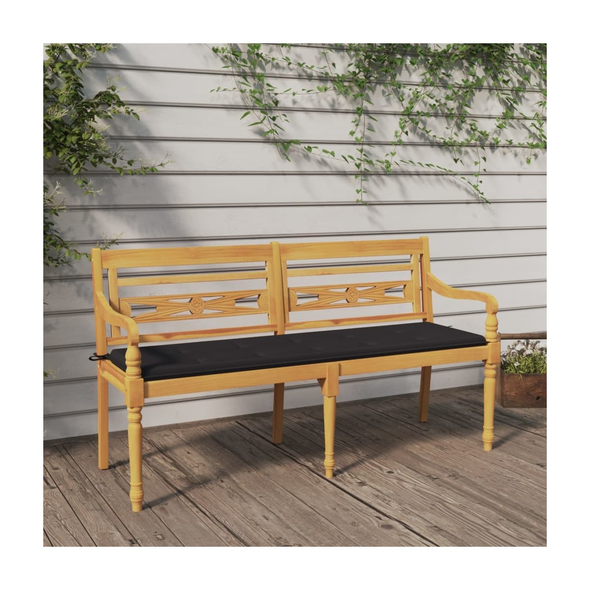 ¡Da un toque de elegancia al espacio al aire libre de tu casa con este banco Batavia de madera con cojín! Madera de teca natural: La madera maciza de teca es un bonito material natural. Ha sido curada, secada al horno y después lijada finamente para darle un aspecto muy suave. La madera de teca es conocida por su excepcional fuerza y resistencia a la intemperie.Material práctico: El tejido posee un aspecto sencillo y limpio, y es transpirable y duradero.Asiento cómodo: El banco cuenta con reposabrazos y un respaldo, que, junto con el cojín incluido, ofrecen un asiento confortable.Elegante diseño: El asiento tallado de forma exquisita dará un toque de encanto rústico al jardín y es muy adecuado para relajarse al aire libre con amigos y familiares. Nota:Cada producto viene con un manual de montaje en la caja para facilitar el montaje.Para prolongar la vida de tus muebles de exterior, te recomendamos que los protejas con una funda impermeable.