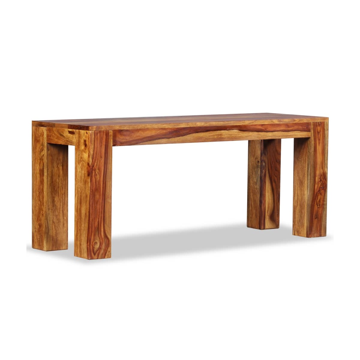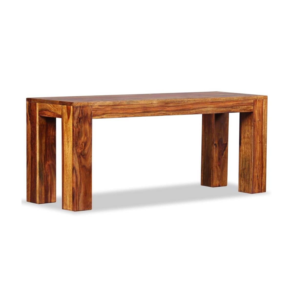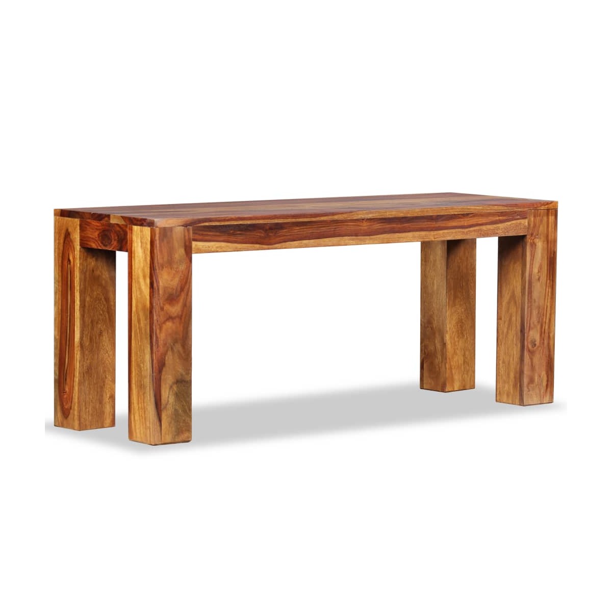 Este elegante y práctico banco de madera será un aporte atemporal para la decoración de tu hogar. Este banco está hecho de madera maciza de sheesham. El sheesham, también conocido como palo de rosa o palisandro, es una madera dura tropical famosas por sus ricas vetas. Las patas del banco están hechas totalmente a mano y las preciosas vetas de la madera hacen que cada mueble sea único y ligeramente diferente al anterior. Las firmes patas de madera contribuyen a una construcción robusta. El montaje es sencillo. Nota importante: Los colores varían de una pieza a otra, por lo que cada una es única. La entrega es aleatoria, lo que garantiza la exclusividad y la individualidad del producto.