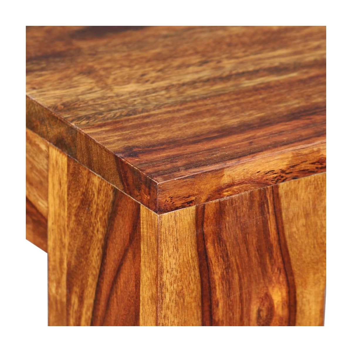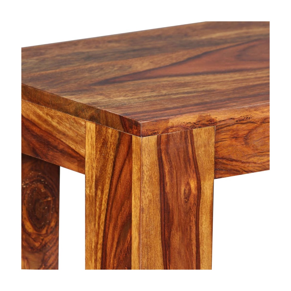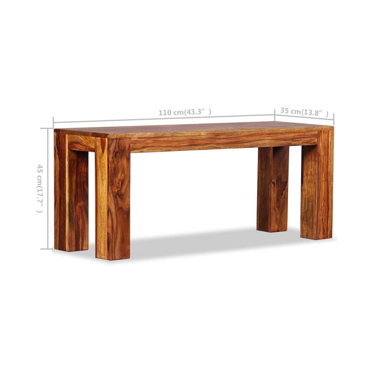 Este elegante y práctico banco de madera será un aporte atemporal para la decoración de tu hogar. Este banco está hecho de madera maciza de sheesham. El sheesham, también conocido como palo de rosa o palisandro, es una madera dura tropical famosas por sus ricas vetas. Las patas del banco están hechas totalmente a mano y las preciosas vetas de la madera hacen que cada mueble sea único y ligeramente diferente al anterior. Las firmes patas de madera contribuyen a una construcción robusta. El montaje es sencillo. Nota importante: Los colores varían de una pieza a otra, por lo que cada una es única. La entrega es aleatoria, lo que garantiza la exclusividad y la individualidad del producto.