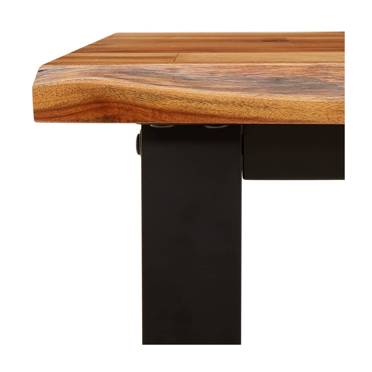 Este banco, con asiento de madera maciza de acacia y patas estables en forma de U, es un buen complemento para el comedor, el salón o el pasillo. Madera maciza de acacia: El banco está hecho de madera maciza de acacia. La madera maciza de acacia es un bonito material natural. Se trata de una madera dura tropical, densa, robusta y duradera.Borde vivo: El borde vivo de la madera que sigue la forma natural del árbol refuerza la belleza del banco de recibidor.Estructura estable: Las patas de acero con recubrimiento en polvo en forma de U dan un estilo industrial a la casa, además de garantizar la estabilidad del banco de comedor.