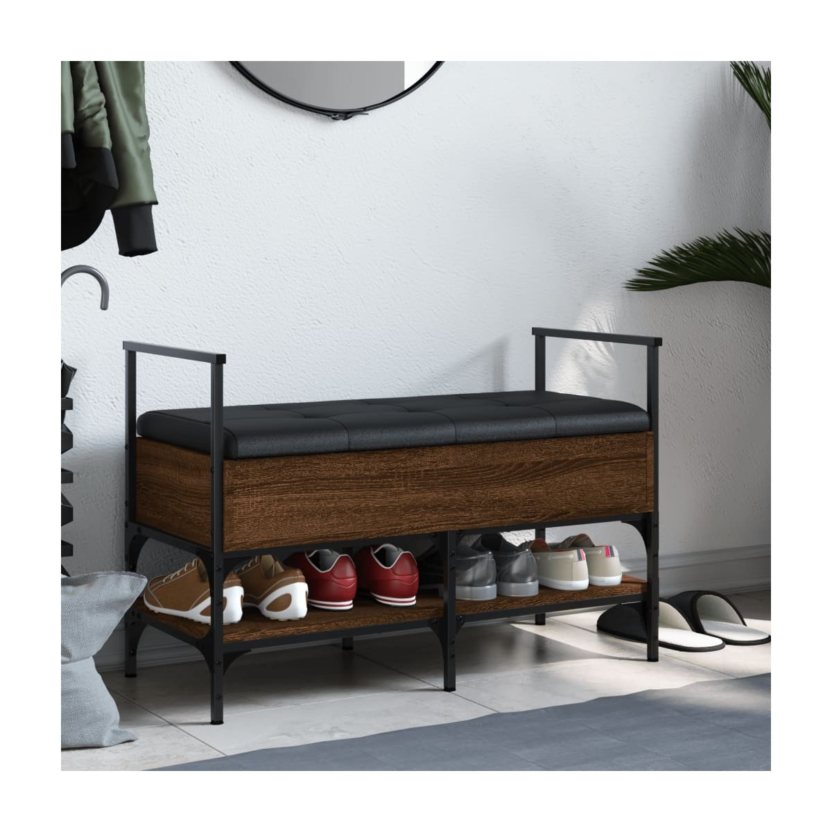 ¡Ten los zapatos ordenados y siempre a mano con este banco zapatero! Construcción resistente: La madera de ingeniería tiene una calidad excepcional y una superficie lisa y se caracteriza por su fuerza, estabilidad y resistencia a la humedad. Las estructuras metálicas también garantizan la solidez y estabilidad del banco.Amplio espacio de almacenaje: El banco de pasillo cuenta con un amplio espacio para guardar el calzado y ayuda a que la casa esté limpia y odenada..Asiento confortable: El mullido cojín de asiento proporciona una comodidad óptima mientras te pones y te quitas los zapatos.Uso versátil: El banco es perfecto para usarse como banco zapatero en el pasillo, o como banco de almacenaje en el salón.