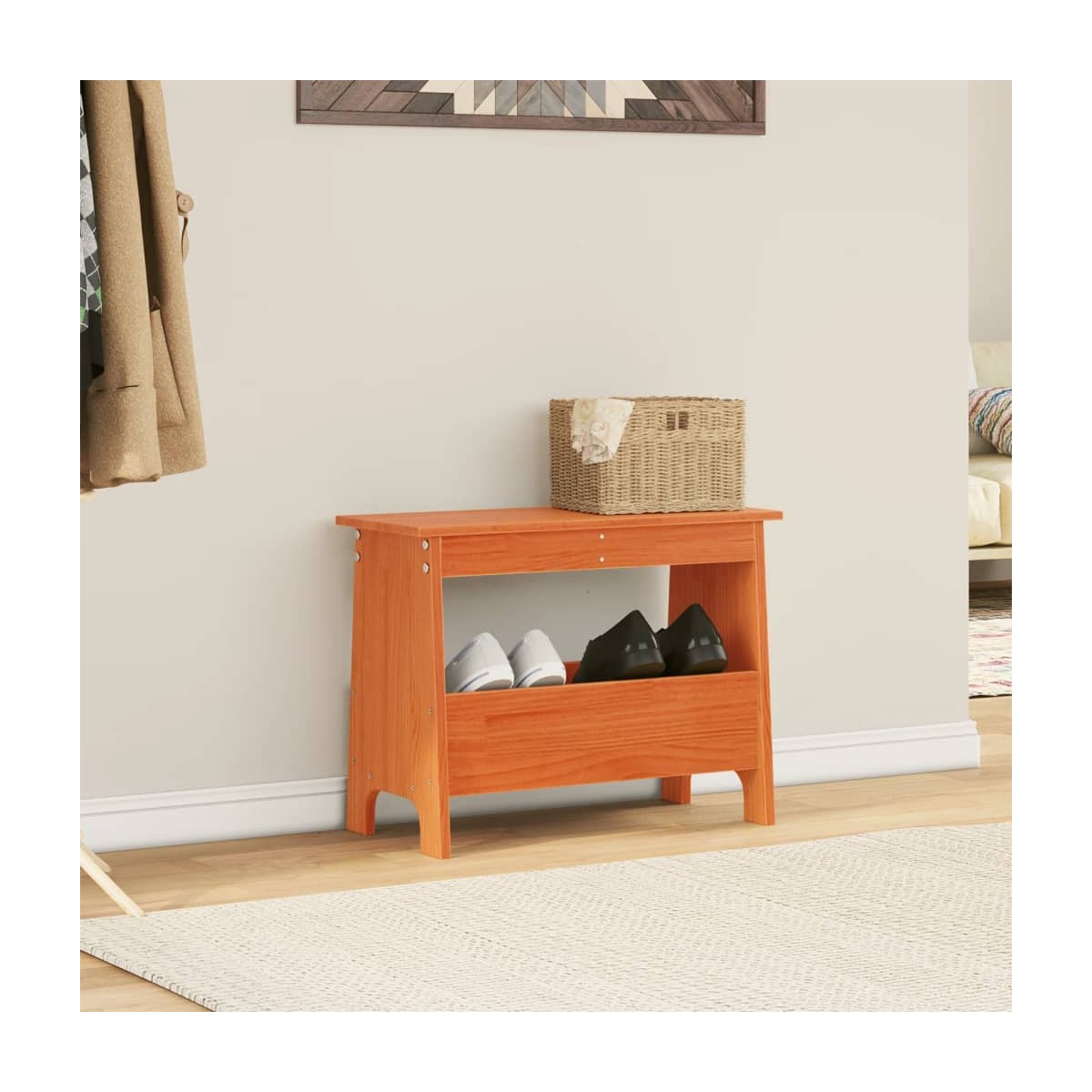 ¡Crea un ambiente cálido y acogedor justo al lado de la puerta con este banco de recibidor de madera! Madera maciza de pino: Este banco de pasillo está hecho de madera maciza de pino. La madera maciza de pino es un bonito material natural. La madera de pino tiene vetas rectas, y los nudos dan al material su distintivo aspecto rústico.Amplio espacio de almacenamiento: Con el estante inferior, este banco de entrada proporciona un amplio espacio para guardar tus libros, zapatos u otras pertenencias personales. Así, tu pasillo, espacio de entrada u otras zonas de estar estarán ordenados y libres de desorden.Superficie estable: El banco para salón tiene una superficie resistente, ideal para exponer objetos decorativos, marcos de fotos, macetas, etc. La superficie del banco de almacenaje también sirve de asiento.