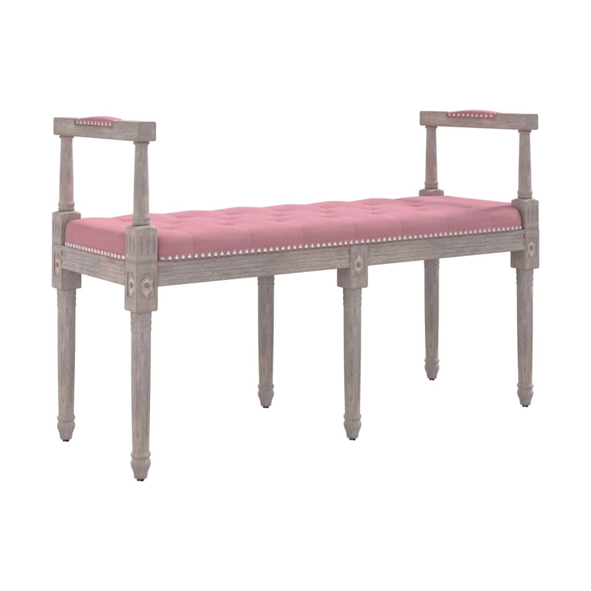 Este banco está destinado a atraer todas las miradas y a ofrecer un espacio adicional para sentarte en casa. Terciopelo suave: Este banco de recibidor está hecho de terciopelo. El terciopelo es una tela suave y lujosa, conocida por su denso pelo de fibras cortadas uniformemente que tienen una suave pelusa. El tejido aterciopelado tiene un tacto distintivamente suave, por lo que es cómodo y agradable de tocar.Asiento estable: Las patas de madera le dan al banco un aspecto natural y agradable a la vez que garantizan la estabilidad. Además, las almohadillas antideslizantes para las patas adheridas al banco evitan que se raye el suelo.Uso versátil: Este banco funciona muy bien en vestíbulos y entradas y funciona como un cómodo banco de piano. También agrega espacio adicional para que descanses los pies y funciona bien con sofás y sofás de dos plazas. Además, proporciona un amplio espacio para organizar almohadas, mantas o revistas.Estilo vintage francés: El asiento del banco de estilo francés con una bonita parte superior capitoné agrega glamour rústico a tu hogar. Su cojín de espuma gruesamente acolchado proporciona una experiencia de asiento suave y relajada.