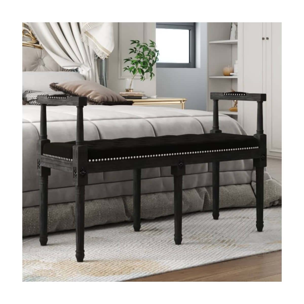 Este banco está destinado a atraer todas las miradas y a ofrecer un espacio adicional para sentarte en casa. Terciopelo suave: Este banco de recibidor está hecho de terciopelo. El terciopelo es una tela suave y lujosa, conocida por su denso pelo de fibras cortadas uniformemente que tienen una suave pelusa. El tejido aterciopelado tiene un tacto distintivamente suave, por lo que es cómodo y agradable de tocar.Asiento estable: Las patas de madera le dan al banco un aspecto natural y agradable a la vez que garantizan la estabilidad. Además, las almohadillas antideslizantes para las patas adheridas al banco evitan que se raye el suelo.Uso versátil: Este banco funciona muy bien en vestíbulos y entradas y funciona como un cómodo banco de piano. También agrega espacio adicional para que descanses los pies y funciona bien con sofás y sofás de dos plazas. Además, proporciona un amplio espacio para organizar almohadas, mantas o revistas.Estilo vintage francés: El asiento del banco de estilo francés con una bonita parte superior capitoné agrega glamour rústico a tu hogar. Su cojín de espuma gruesamente acolchado proporciona una experiencia de asiento suave y relajada.