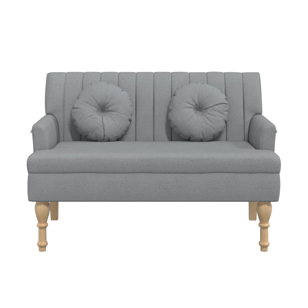 Tanto si quieres montar una zona acogedora donde sentarte en casa como si buscar un mueble elegante y práctico para la oficina, este elegante banco es una opción excelente. Material de primera calidad: La tela posee un aspecto sencillo y limpio, y es transpirable y duradera.Asiento cómodo: El banco es muy cómodo gracias al grueso acolchado del asiento, el respaldo, los reposabrazos y los cojines de respaldo.Diseño elegante: El banco tiene un respaldo con líneas verticales y patas de estilo antiguo, lo que añade un toque elegante a la decoración de la casa.Patas de madera: Las patas de madera maciza de caucho dan al producto un aspecto natural y agradable, además de garantizar la estabilidad. Puede combinar bien con cualquier decoración de interior.Estructura robusta y estable: La estructura de madera contrachapada del banco garantiza su solidez y estabilidad.